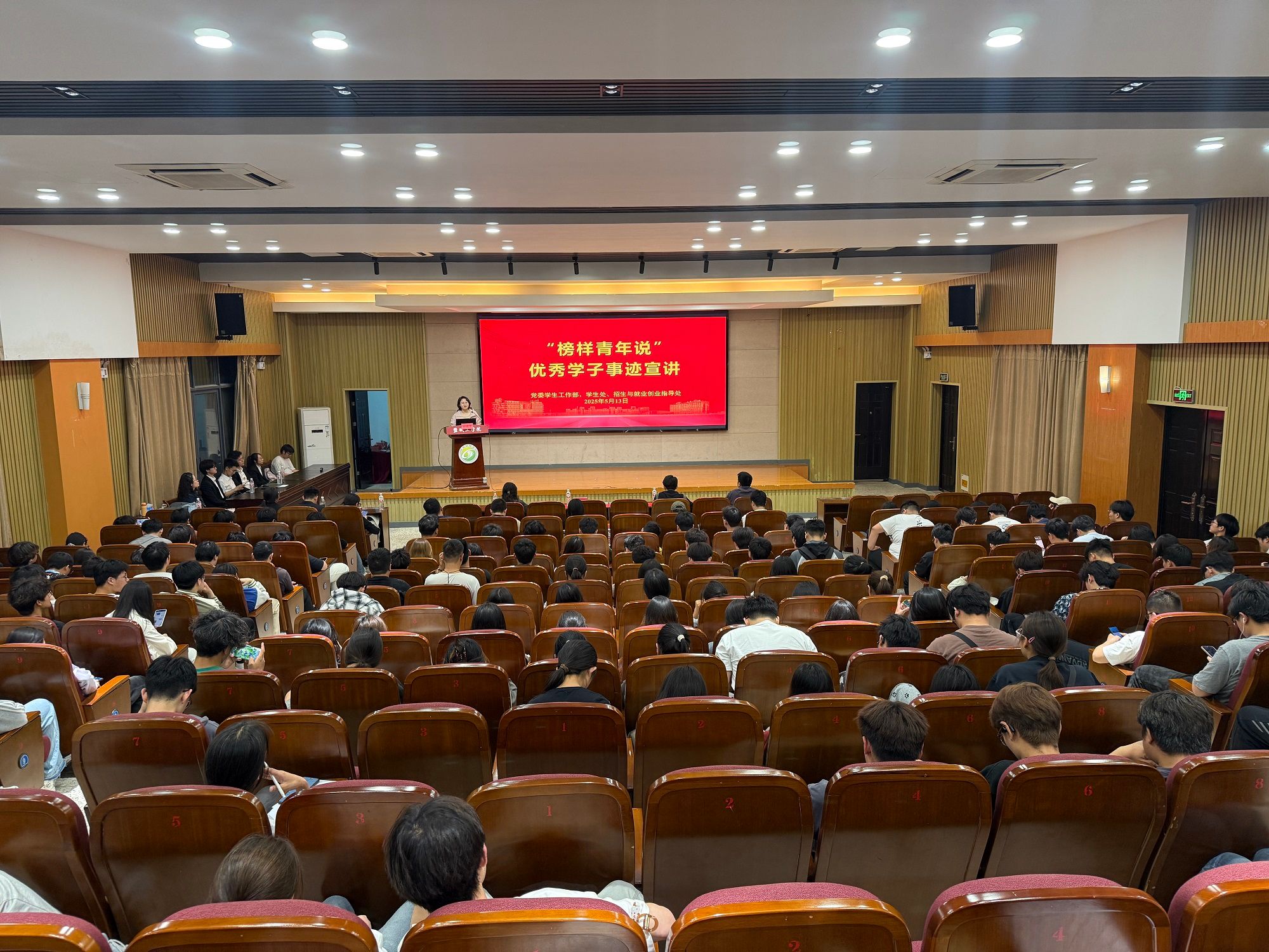 为充分发挥优秀学子的榜样引领作用,激励广大学生踔厉奋发、追求卓越,5月13日晚,在希望大道校区机械馆报告厅,学生处举办“榜样青年说”优秀学子事迹宣讲活动。学生处副处长马晓英出席。8名优秀学生代表登台分享成长故事,相关二级学院学工办主任、辅导员代表,大一年级学生代表、国家助学金受助学生代表等200余人参加。