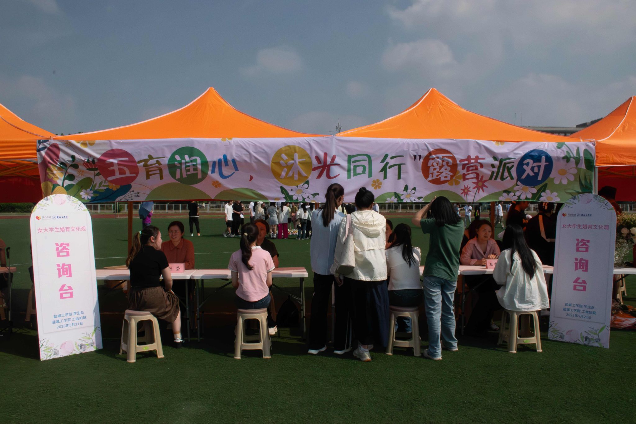 除了趣味横生的游戏环节,露营派对还特别设置了与教师的互动环节。校妇联兼职副主席倪璞以及心理健康教育中心的教师们为同学们提供了专业的“女大学生婚育文化观”咨询服务,帮助她们更深入地了解自我,增强探索恋爱婚育文化的能力。