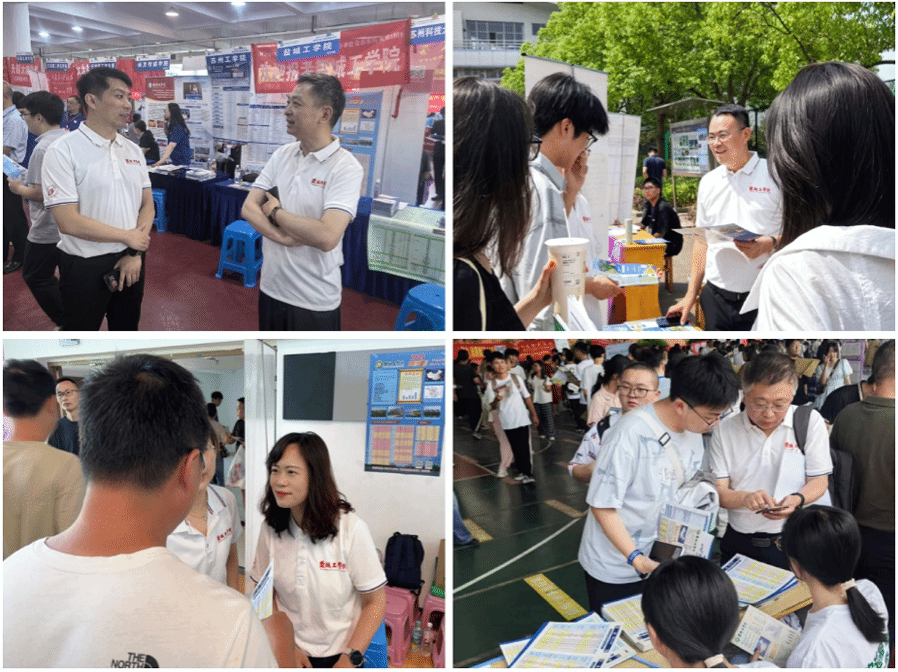 6月24 日高考成绩公布后,学院党政领导带队,5 个工作小组即刻奔赴泰州市区、姜堰、兴化等五地二十余所高中,通过三天密集宣传,以招生海报展示、政策手册发放、一对一志愿指导等形式,全方位解读学校优势学科、本科硕士培养体系及 2025 年招生新政。咨询现场考生及家长络绎不绝,招生团队针对专业分流规则、就业前景等高频问题,结合历年录取数据提供精准解答。