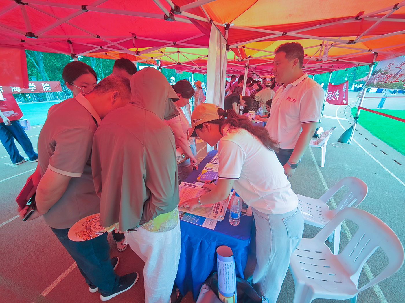 在咨询现场,招生宣传工作组成员顶烈日、战酷暑,耐心解答考生及家长关于专业特色、师资力量、就业前景等方面的疑问。通过展示学生竞赛获奖证书、优秀毕业生发展案例等材料,对考生进行志愿填报和生涯规划开展指导,增进考生对我校的认知。
