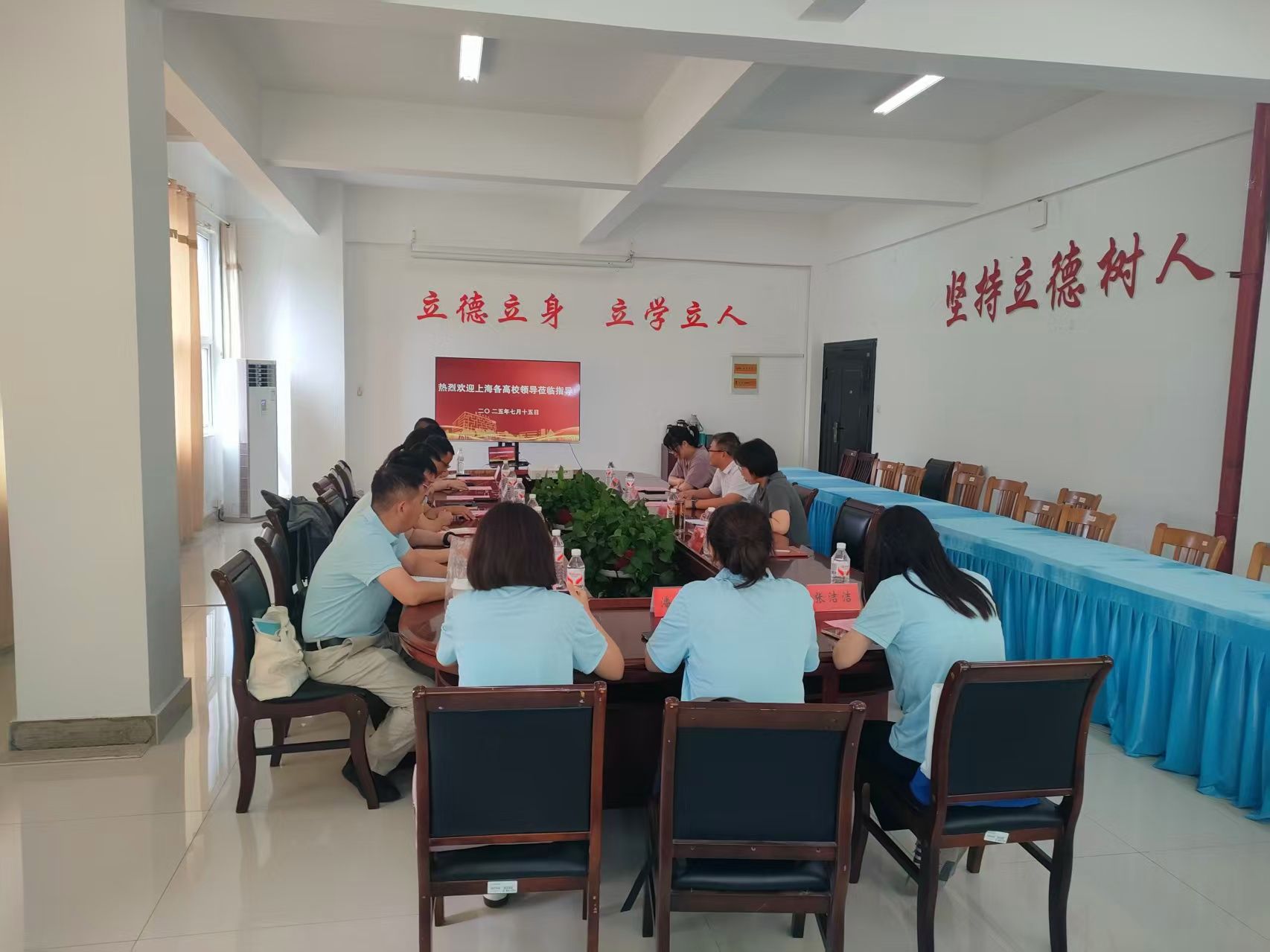 7月15日下午,上海-盐城高校学生资助工作交流会暨上海高校“行走中国”主题教育活动在我校学生处会议室顺利举行。上海大学学工办主任孟祥栋、上海对外经贸大学学工部部长缪韵笛等来自上海5所高校的10位老师,盐城师范学院学生处副处长雷承富,盐城师范学院、盐城工学院学生资助中心相关教师代表齐聚一堂,共话学生资助育人工作。会议由我校学生处副处长马晓英主持。