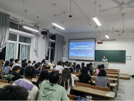 班会围绕留校与离校安全、交通安全、人身安全、反诈安全等内容展开,通过案例讲解、互动问答等形式,向同学们普及假期安全知识与应对技能。李咏琪叮嘱同学们要注意出行安全,也要合理规划学习时间,让放松与成长并行。