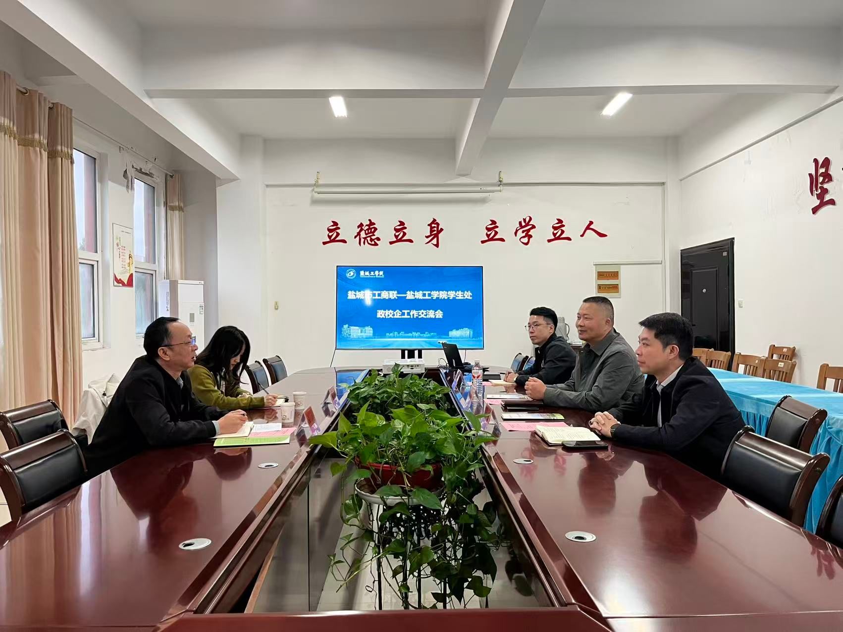 10月20日,盐城市工商联经济联络处处长杜波、副处长秦雨一行来我校学生处进行合作交流。学生处处长、招生与就业创业指导处处长杨汉华,副处长阳韬热情接待,就业指导中心相关同志参加活动。杨汉华主持会议。