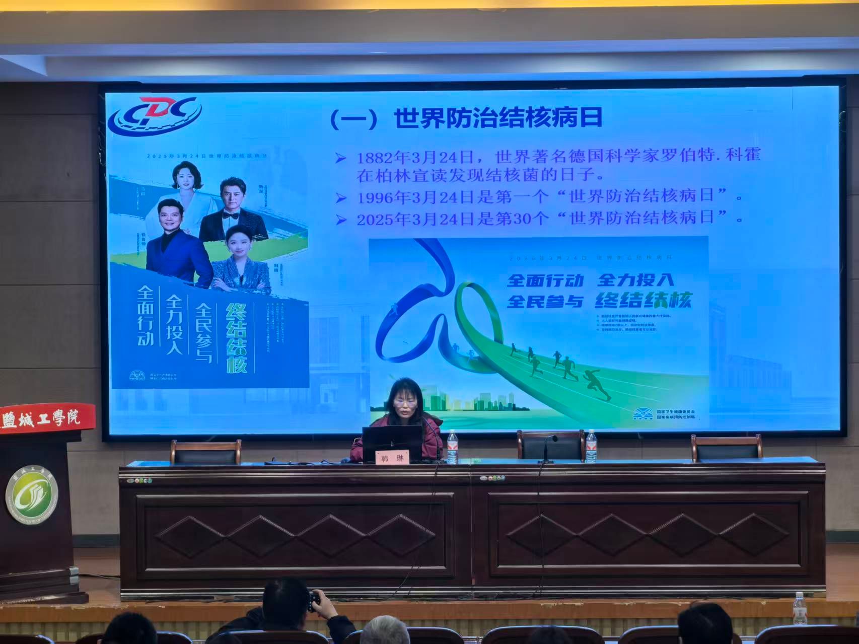 会议邀请盐城市亭湖区疾控中心医生韩琳作《冬季呼吸道传染病防控知识》专题讲座。她结合当前流行病学特点,系统讲解了肺结核等冬季常见传染病的传播机制、核心症状、筛查政策、预防策略及学校应急处置要点。讲座内容详实、案例生动、指导性强,为我校科学精准开展防控工作提供了坚实的专业支撑。