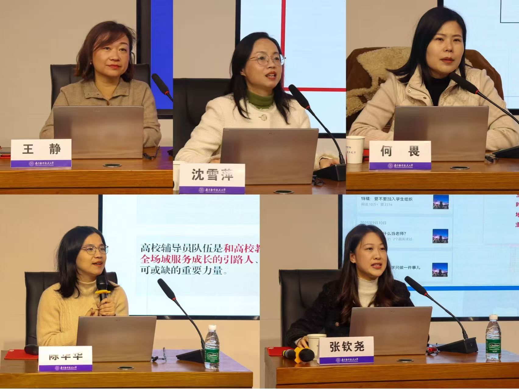 本次培训课程体系全面、内容丰富实用,涵盖了辅导员角色定位、思政引领方法、职业能力竞赛指导等多个核心模块。南京航空航天大学学工部部长王静以《立德树人、与时俱进,推动学生思想政治工作高质量发展》为题,结合新时代思政工作的新要求,分享了南航在构建“三全育人”体系、打造思政工作品牌等方面的创新实践,为我校思政工作提质增效提供了新思路;全国高校就业创业指导教师培训特聘专家沈雪萍聚焦职业规划大赛的备赛全流程,从选题打磨、作品优化到选手辅导,对比分析了不同阶段赛事的评审侧重点,分享了指导学生参赛中的实战技巧,为今后指导学生参赛提供了方法论和成功路径;南京航空航天大学马克思主义学院党委书记何畏以历史认知与呈现为核心,深刻揭示历史虚无主义的本质与危害,强调警惕以美化侵略者、歪曲历史事实为代表的错误倾向,阐述了掌握在日常工作中辨析错误思潮、弘扬主流价值观的方法;2023年江苏省“最美高校辅导员”、第九届江苏高校辅导员素质能力大赛一等奖获得者陈华华以《角色“变形记”——辅导员的三种打开方式》为题,结合真实案例解析了辅导员在不同场景下的角色转换技巧;南京航空航天大学能源与动力学院辅导员张钦尧围绕主题月讲评的选题设计、内容组织与现场呈现等环节,拆解了如何将思政元素融入日常讲评,让思政引领更接地气、入人心。