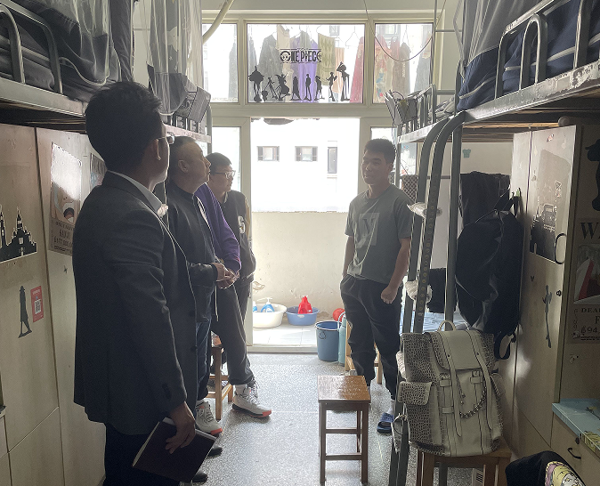 检查过程中,姬军与同学们亲切交流,对同学们的思想、学习、生活等进行了深入了解。他要求同学们积极配合学校疫情防控工作,严守学校纪律,加强身体锻炼,保持良好心态,做好自我健康监测,如有不适及时报备。