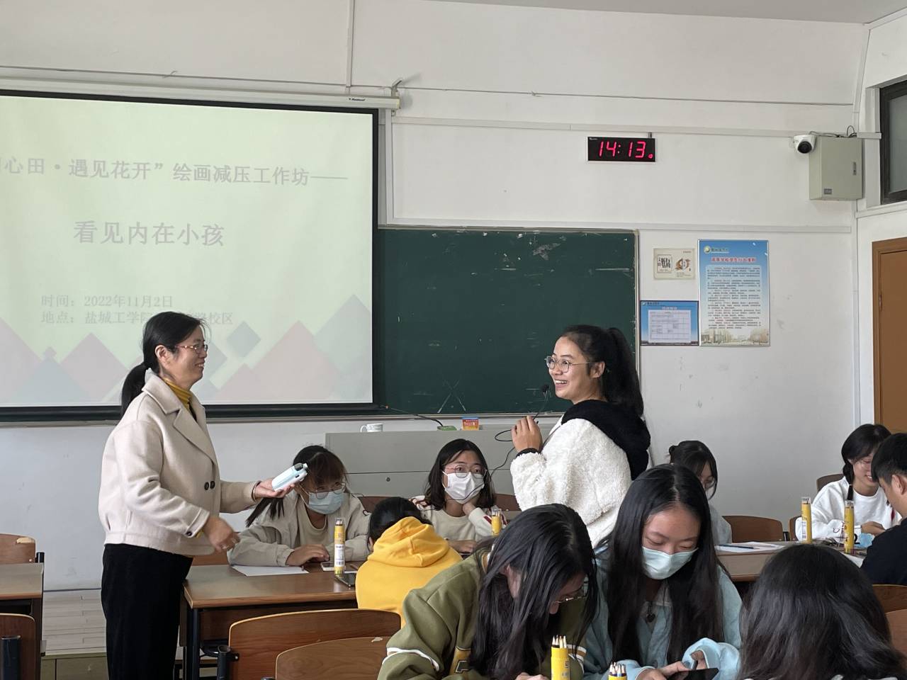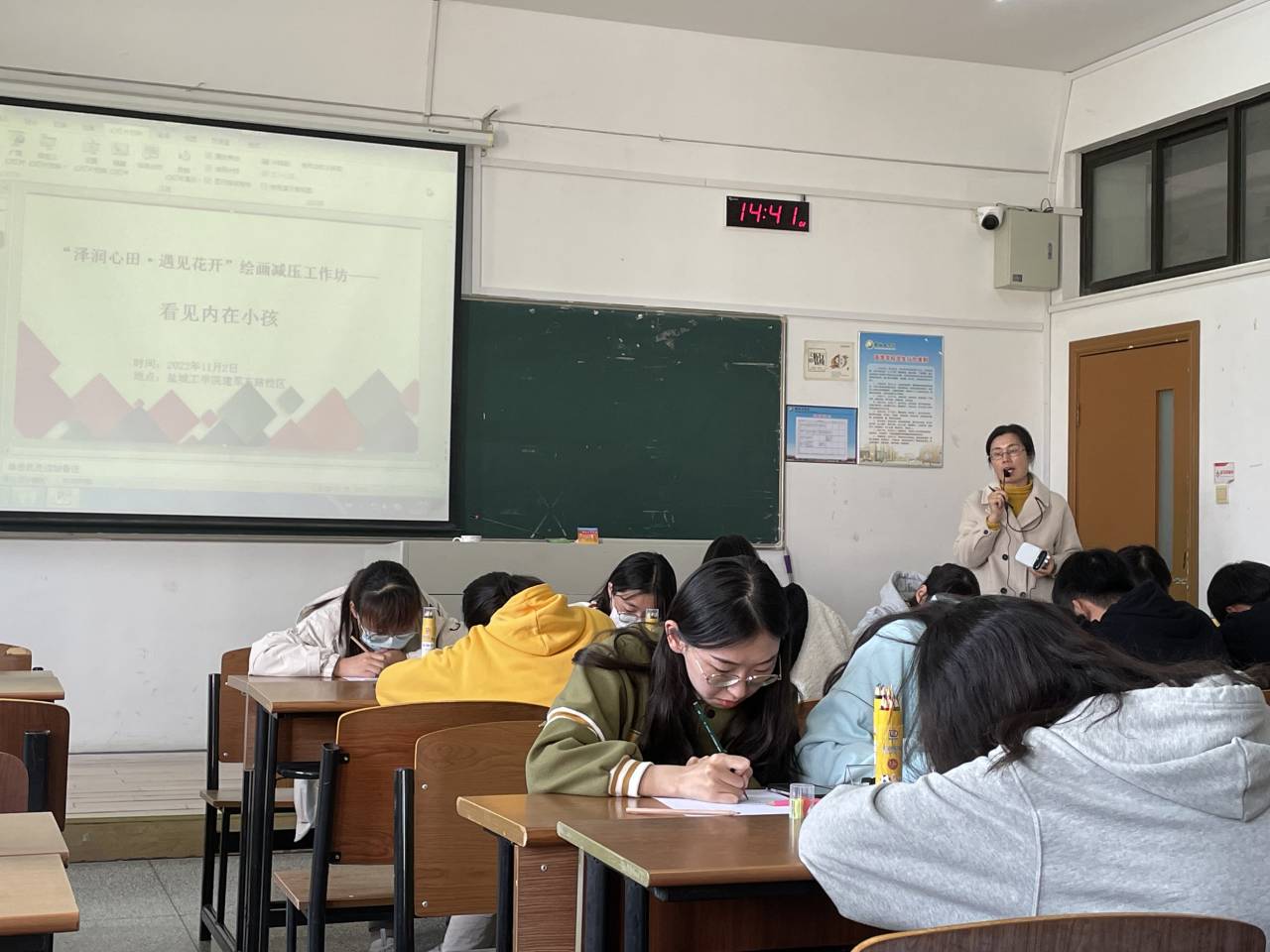 11月2日下午2点,心理健康教育中心在北校区知行楼310教室开展“泽润心田·遇见花开”主题之“内在小孩”绘画工作坊。中心专职教师谢莹组织活动,我校心理协会及二级学院学生会心理部20余名同学参加活动。