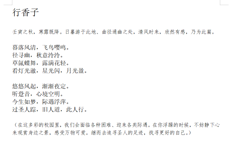 本次活动带领大学生学习心理文学,持续感受文化与自身主观情感的交融,使诗歌融入到对生命的热爱之中,凝聚到对人生的追求之中,在积极阳光的校园环境下不断传承诗词艺术,认识自己,陶冶诗情,为大学生心理健康发展奠定基础。