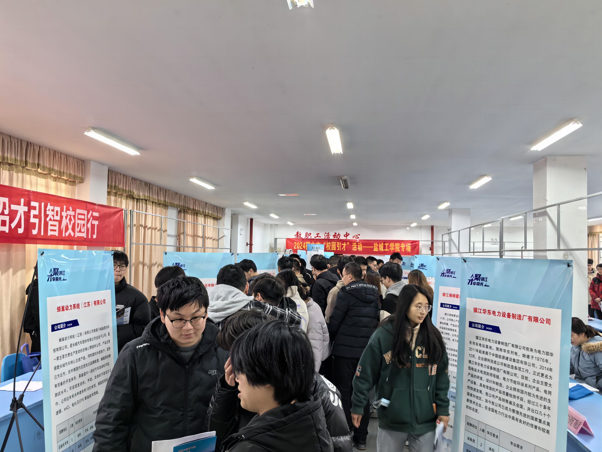 此次招聘会吸引了蜂巢动力系统(江苏)有限公司、丹阳丹耀光学股份有限公司、上迈(镇江)新能源科技有限公司、威腾电气集团股份有限公司、江苏美科太阳能科技股份有限公司、江苏天辰新材料股份有限公司、中电电气(江苏)变压器制造有限公司、迅驰车业江苏有限公司等37家镇江市重点产业企业到校招聘,提供职位数790余个,所需专业涵盖了机械、化工、电气、材料、经管等与我校毕业生密切相关的专业。现场收到简历600余份,初步达成就业意向近300人,取得了良好成效。值得一提的是,在本次招聘会活动中,以人工智能、新能源等行业为代表的“新质生产力”企业岗位成为亮点和热点。