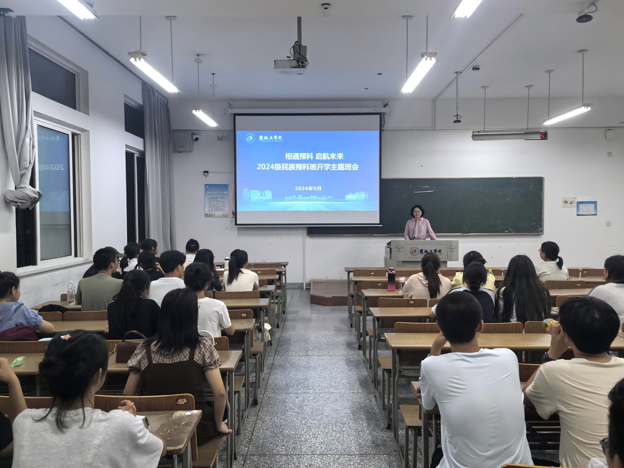 马晓英向2024级少数民族预科生表示欢迎和祝贺,并向新生简要介绍了学校的发展历史和专业特色等基本情况。她结合自己的工作经验,从大学生活、民族认同、预科学习、校纪校规、电信诈骗等方面进行了系统全面地讲解。她温馨寄语同学们要珍惜大学时光,从预科启航,不负韶华,勇往直前,驶向更灿烂的未来。