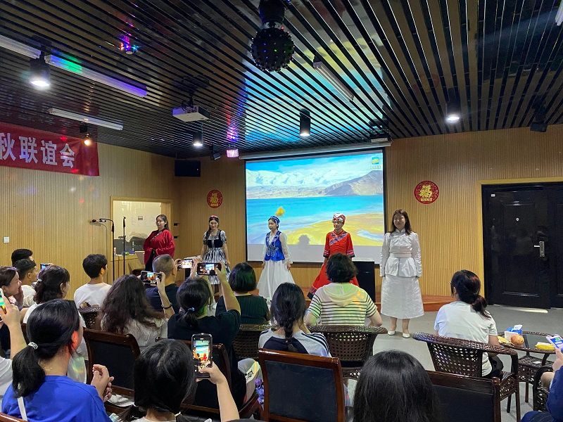 联谊会上,吴宇欣同学代表2024级少数民族预科班同学发言。她表示,要传承校训精神,做道德高尚之人,追求知识之人,钻研学习之人,重视实践之人,在奋斗中释放青春、追逐梦想。壮族同学何远懿演唱歌曲《月半小夜曲》;热阿依、宋革拉、马晓玲、古丽斯坛、吉西卓分别展示了哈萨克族、回族、维吾尔族、蒙古族等民族服装,用民族语言传递了中秋节日祝福;维吾尔族同学阿力亚·艾尼江以一段舞蹈表达了新疆之美、文化之美。各民族同学齐聚一堂,用生动表演传情表意,将联谊会气氛推向高潮。