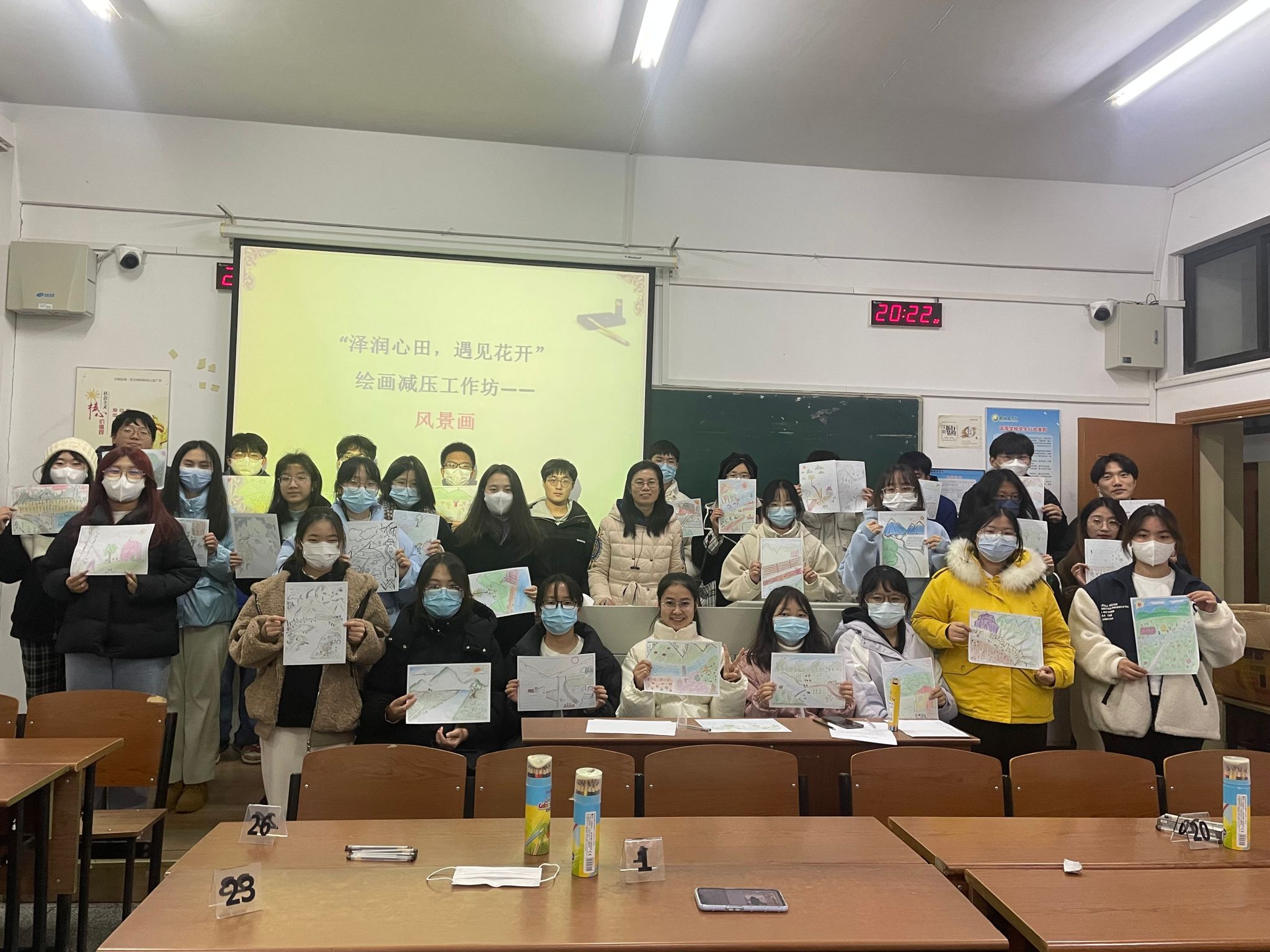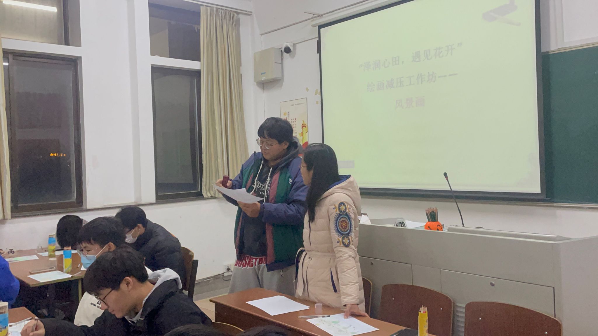 12月3日晚上7点,心理健康教育中心在北校区知行楼310教室开展“泽润心田·遇见花开”主题之“风景”绘画工作坊。中心专职教师谢莹组织活动,我校心理协会及二级学院学生会心理部30余名同学参加活动。