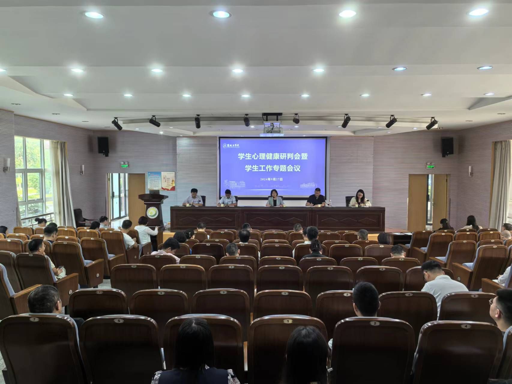 9月27日上午,在希望大道校区土木馆报告厅,学校召开学生心理健康研判会暨学生工作专题会议。党委常委、副校长邢晓平主持会议。学生处、安保处、研究生院、团委主要负责人,二级学院分管学生工作书记,学工办(副)主任、团委(副)书记,学生处、安保处、团委科级以上人员,研究生院相关负责人,国教院辅导员,后勤集团副总、公寓管理中心主任参加会议。