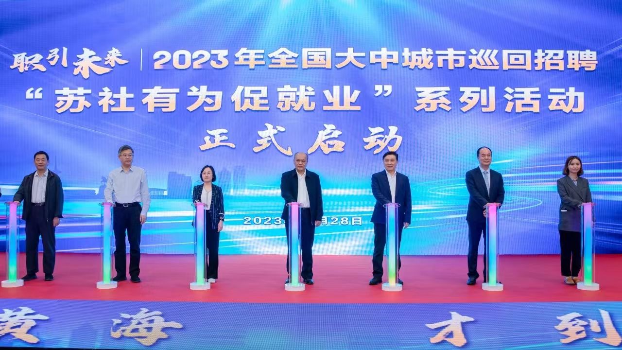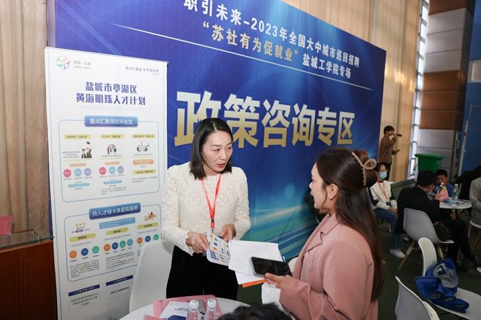 为深入学习贯彻习近平总书记关于做好高校毕业生就业工作的重要指示批示精神,积极落实就业优先战略,10月28日下午,由人力资源社会保障部全国人才流动中心指导,江苏省人力资源和社会保障厅、江苏省民政厅、盐城市人民政府共同举办的“职引未来2023年全国大中城市巡回招聘苏社有为促就业’系列活动”启动仪式暨盐城工学院专场招聘会在我校风雨操场举行。