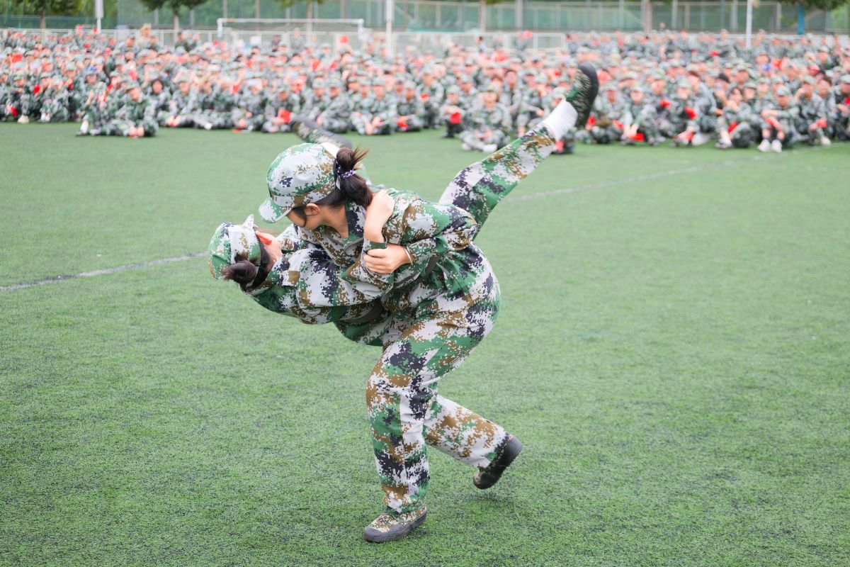 伴随着激昂的中国人民解放军军歌,2024级新生军训旅分列式及汇报表演正式开始。党委书记方海林下达分列式开始指令。由2024级新生组成的护旗、持枪方阵及各二级学院组成的分列式方阵英姿飒爽、意气风发,有序通过主席台接受检阅。汇报表演中,擒拿格斗方队步伐铿锵、气势昂扬,尽显青春力量;战术及战场救护模拟演练,气势磅礴、热血澎湃,以饱满热情展现了盐工学子的青春形象。