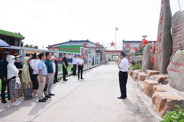 在海安市墩头镇“老兵家园”,全体人员在共和国双百人物、中央党政国家机关干部教育培训师资库特级专家张云泉教授带领下参观了长征园、井冈山五指山、遵义会议会址、党史长廊、红船码头、张云泉事迹展览馆,认真聆听了张云泉革命传统教育和其参军及工作以来的心路历程。过程中,邵荣带队慰问了张云泉的103岁老母亲,进行亲切交谈并合影,对光荣而平凡的母亲表达浓厚的敬意。据悉,“老兵家园”是张云泉退休后为回报家乡在当地党委政府支持下建设的党性教育基地,成为党史学习教育和党性淬炼场所。