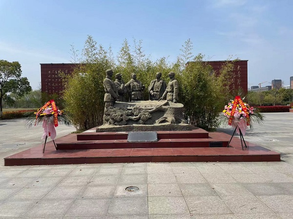 在南校区铁军广场,铁军塑像两侧摆放挂有“弘扬铁军精神,坚持立德树人”“缅怀革命先烈,厚植爱国情怀”的花篮,旨在以史育德、以史铸魂、以史聚力,传递红色基因,培育家国情怀,进一步坚定抗疫信心,砥砺初心本色,蓄力践行担当。