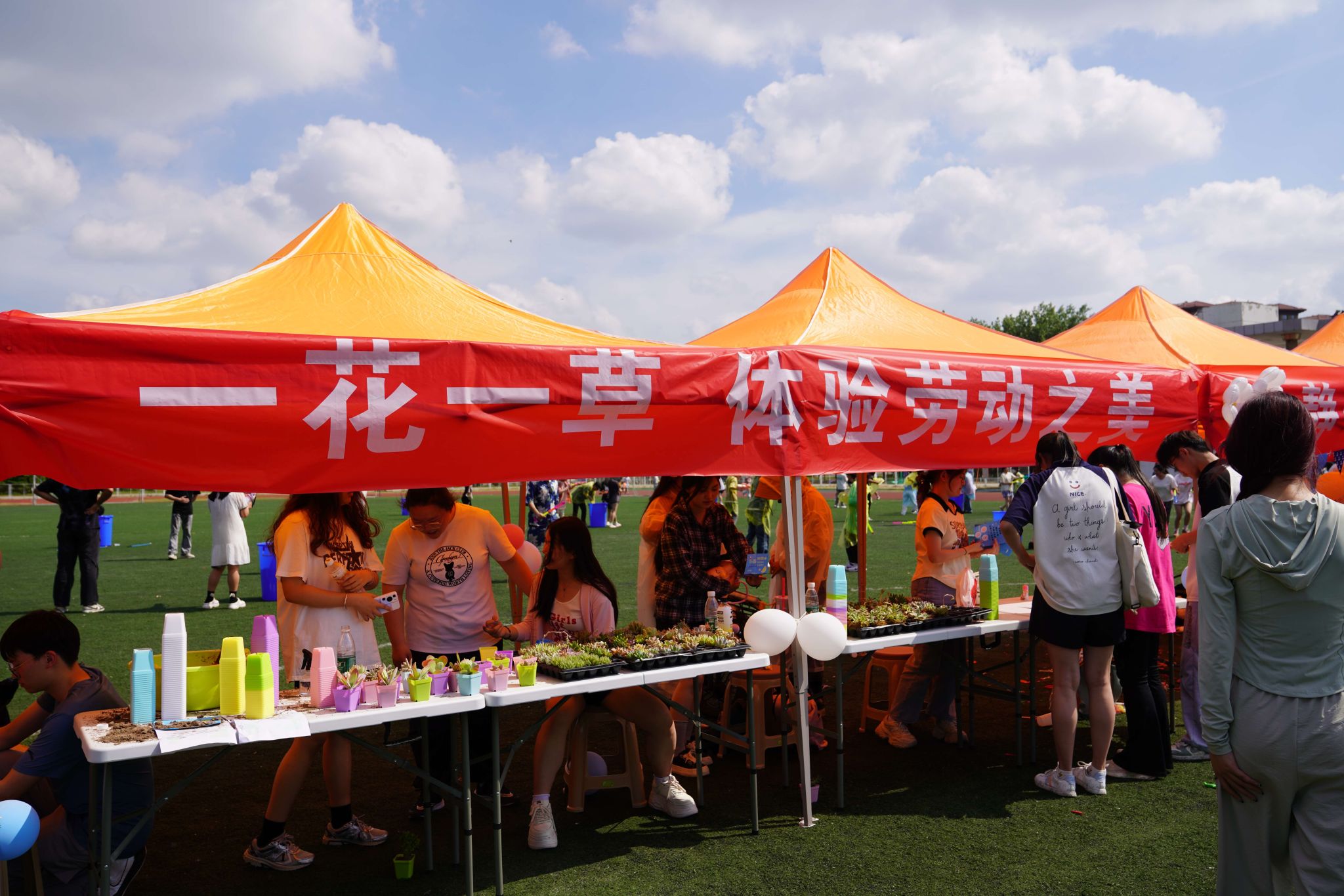此次游园会设置了20余个项目,每个摊位都是一个惊喜,吸引了众多同学的热情参与。比如,“拒绝标签”游戏引导学生拒绝刻板印象,认识自我;“心理飞行棋”游戏通过趣味对赛帮助学生学习心理知识;“扇绘心曲”给予学生动手操作、提升审美的机会;“种下一抹绿”则让学生们体验到劳动的乐趣……在游园会团建项目中,团队成员相互合作、密切配合,提高了团队的协作能力和默契程度,增进了团队成员间的了解与信任,加固了彼此之间的情感和友谊。