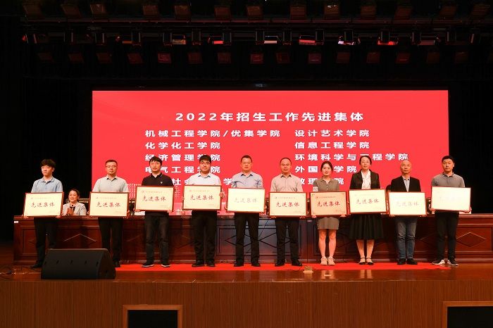 学生处处长徐新华汇报我校2022年招生、就业工作和2023年考研工作基本情况。化学化工学院党委副书记庞辉、经济管理学院党委书记卜树春、环境科学与工程学院党总支书记陈阳分别代表招生工作先进集体、就业工作先进集体、考研工作先进集体发言,介绍了学院在人才培养、招生就业和考研指导服务等方面的经验和做法。考取苏州大学研究生、机械优集学院B机械192班陈寅晞代表考取研究生同学发言。