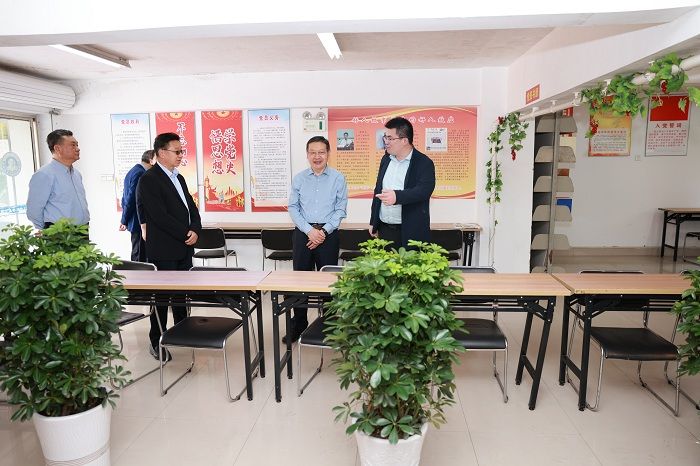 徐子敏依次参观了学校土木工程学院“砼心苑”一站式试点社区辅导员工作室、党员活动室、图书馆学生服务场所,察看了希望大道校区一组团“一站式”学生社区建设点,与专职辅导员、学生党员就社区党建工作、教育管理、活动开展、咨询服务等进行了细致交流。随后,他来到大学生活动中心一楼,视察学生事务服务大厅运行情况,在“红石榴”守护驿站服务台前,与学校新疆派驻教师亲切交谈,仔细询问了学校少数民族学生基本底数和思政育人、管理育人、资助育人等工作的落实措施;在心理健康咨询服务台前,他详细了解了学校心理健康教育专职教师配备、心理咨询服务体系建设和心理健康教育工作条件完善等情况。