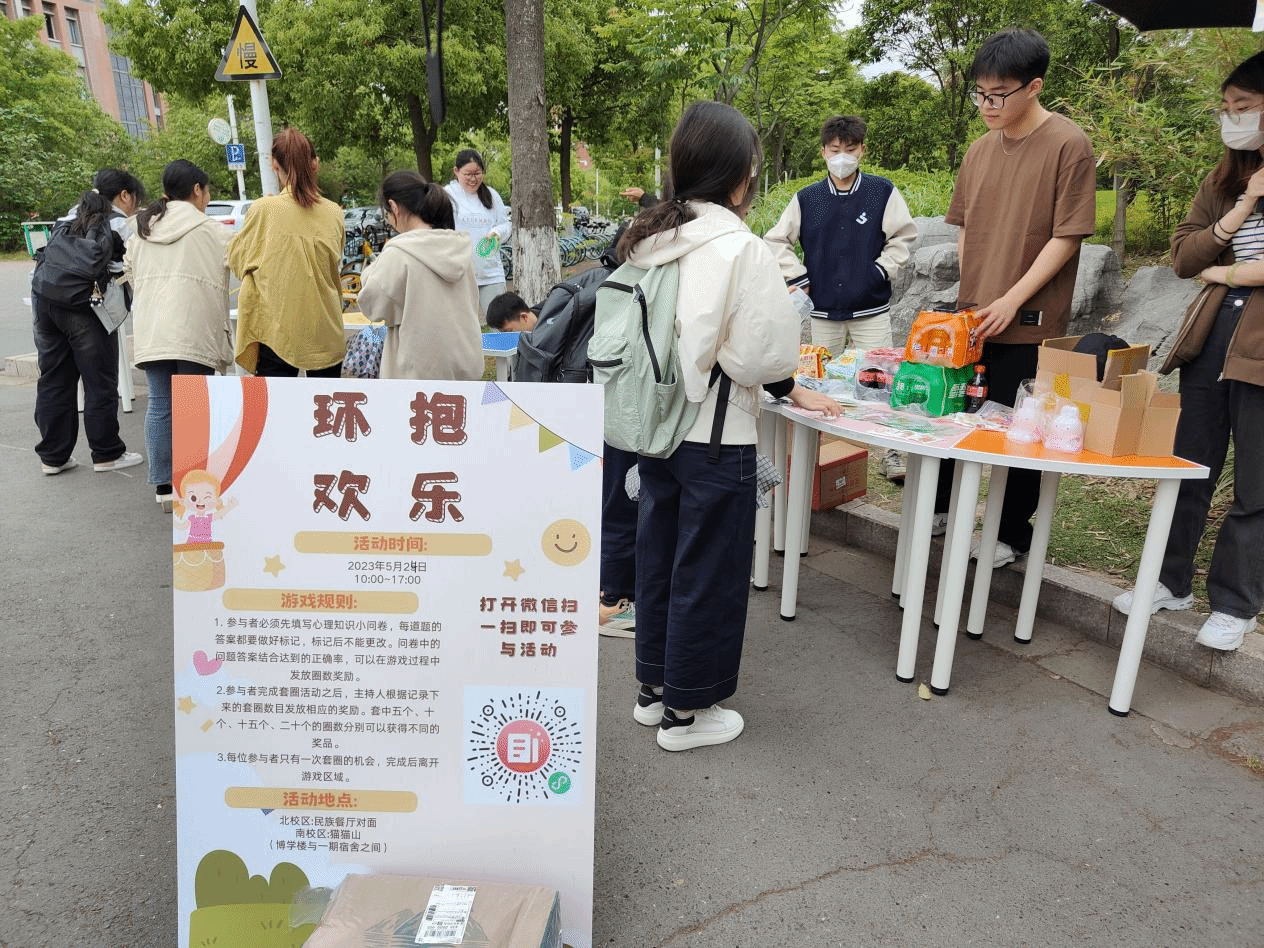 绿阴生昼静,孤花表春余。在这个清新美好的季节里,为进一步普及心理健康教育知识,提高同学们对心理健康的科学认知水平,营造良好的校园心理教育氛围,贯彻省教育厅和我校《关于组织开展“重塑心秩序 青春再启航”主题教育活动》精神,围绕“525”全国心理健康日,盐城工学院大学生心理协会于2023年5月24日上午10点,在南校区博学楼北侧、北校区民族餐厅对面开展“环抱欢乐”心理套圈活动。此次活动践行体验式的教育理念,引导同学走出课堂,走出宿舍,走进自然,沉浸式学习心理健康知识,放松临近期末紧张的身心。