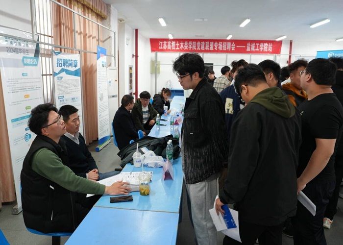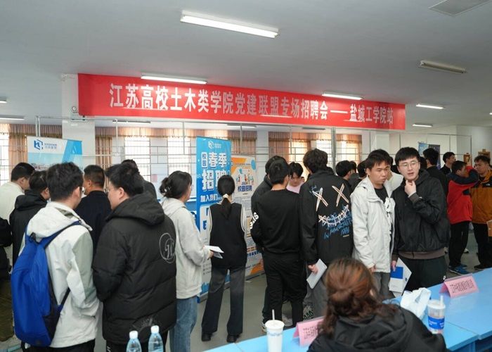 为全力做好2024届毕业生就业工作,满足用人单位选才和毕业生就业需要,3月29日下午,由江苏省土木建筑学会、江苏高校土木类学院党建联盟主办,我校土木工程学院承办的江苏高校土木类学院党建联盟专场招聘会(盐城工学院站)在希望大道校区大学生活动中心一楼就业市场举行。
