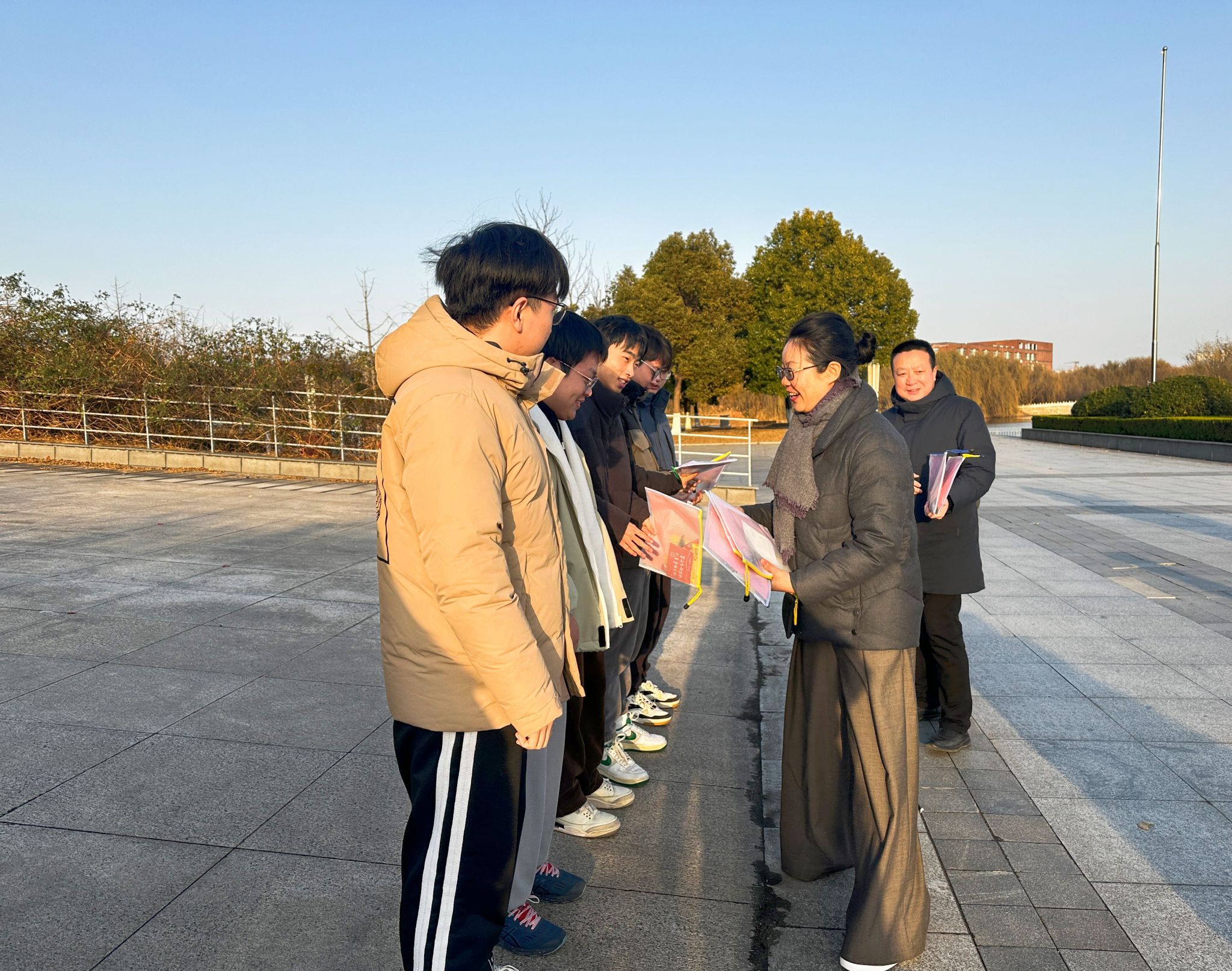 余晓红亲切询问同学们的备考情况,并提醒大家及时添加衣物,注意保暖,合理饮食,科学作息,调整心情,轻装上阵。随后为同学们发放爱心礼包,礼包中有暖宝宝、巧克力、文具和考研小贴士等物品,每位同学同时收到了一份充满浓浓祝愿的贺卡,这是对他们的鼓励、祝福和期待。徐顾伟同学表示:“收到这一份承载着满满祝福的礼物,我心中倍感温暖和感激。我将坚定信念,勇往直前,充满信心奔赴考场,争取一战成硕!”