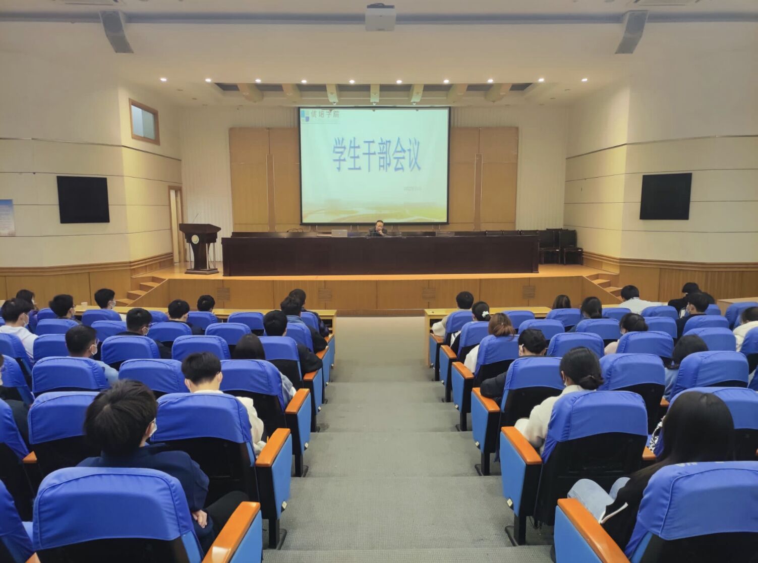11月26日下午,在建军东路校区图书馆报告厅,优培学院举行学生干部会议。学院党总支书记李刚进行专题讲座,学院各班级主要班委、学团联合会主要成员参加。会议由学院学工办主任李凤芹主持。