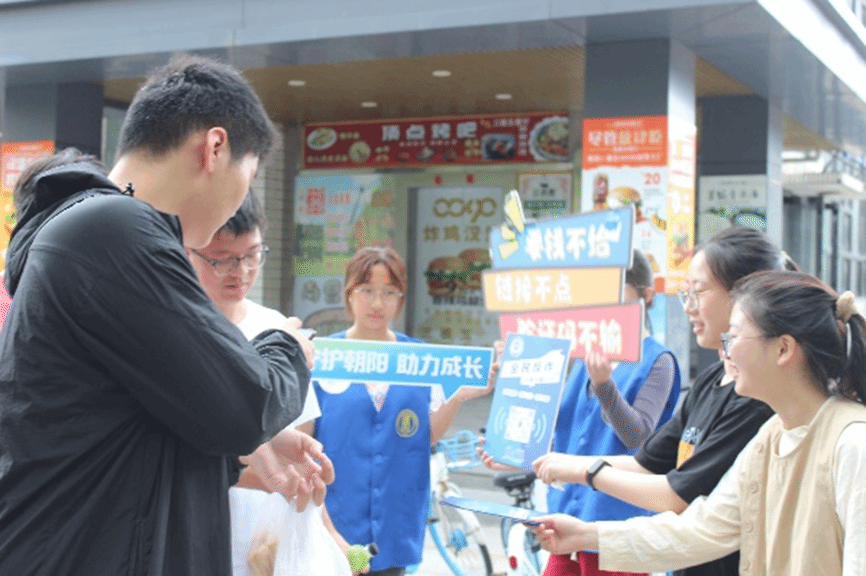 亭湖区团委工作人员和海生学院志愿者在学校里设置防诈宣传点,向同学们进行宣传讲解。同时,还前往新生军训处,向他们分发防诈手册,宣传诈骗危害,提醒他们小心谨慎,保持警惕,谨防上当受骗。
