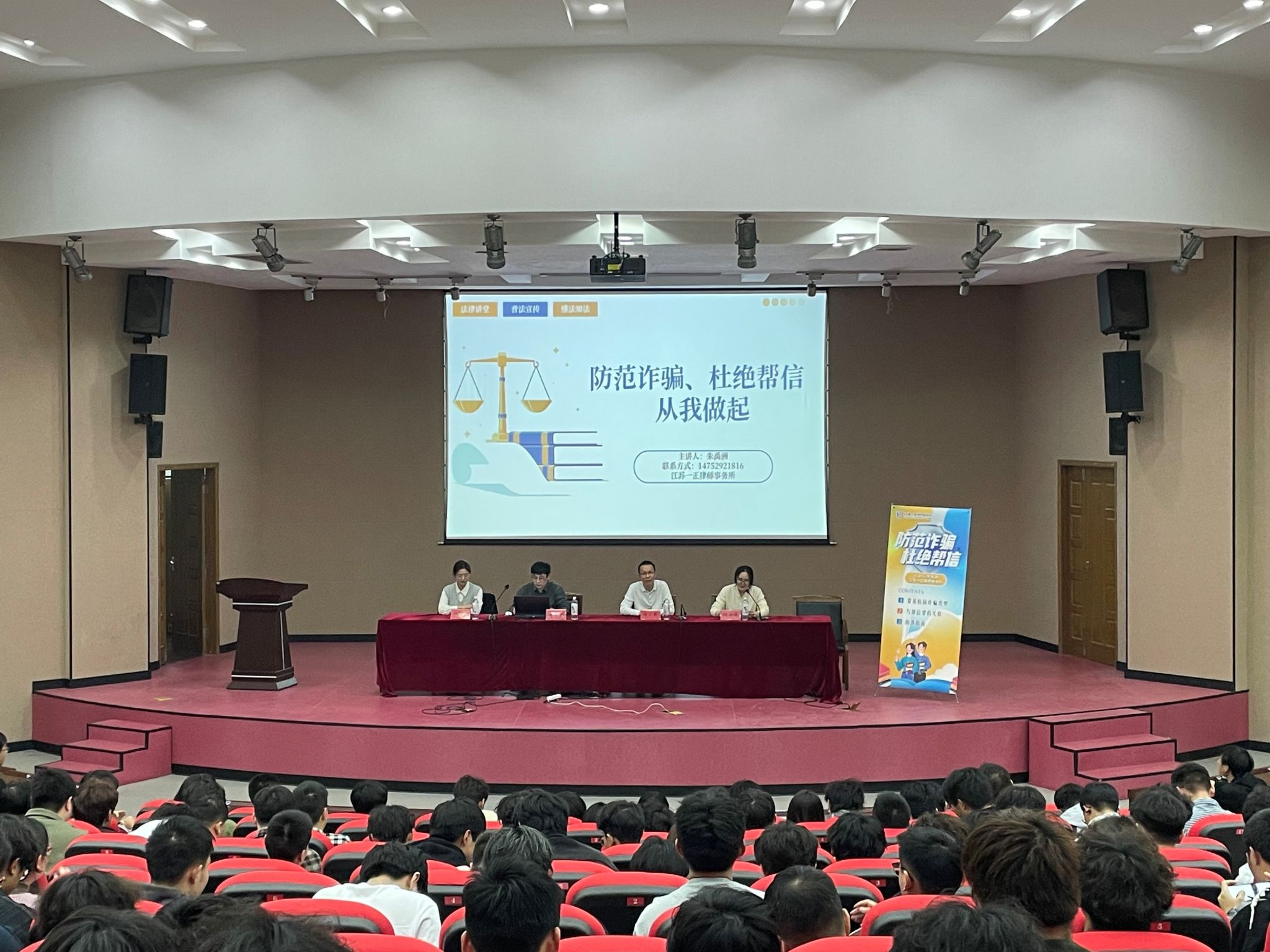 为进一步增强学生法治意识,提升防诈骗能力,提高反诈知晓率和参与度,筑牢校园安全防线,4月9日晚,机械优集院在北校区知达楼五四报告厅举办“防范诈骗、杜绝帮信从我做起”专题教育讲座。学院党委副书记阎小民、学工办主任程云庆、新生辅导员及2024级大一新生近470人参加活动。讲座由学工办主任程云庆主持,特邀2009级优秀校友、现任职于江苏一正律师事务所的专职律师朱禹洲担任主讲嘉宾。