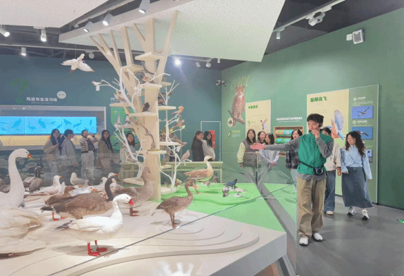 4月27日,为进一步增强社会公众爱鸟护鸟意识,传播生态文明理念,数理学院组织学生代表在黄海湿地博物馆开展鸟类科普活动。活动中,学生代表向往来游客详细介绍黄海湿地作为全球候鸟迁徙重要中转站的生态地位以及湿地的形成过程、生态功能等。通过图文展示、珍稀鸟类标本及互动影像资料等,生动讲解丹顶鹤、勺嘴鹬等珍稀鸟类在盐城湿地栖息繁衍的故事,引导广大游客深刻认识湿地保护在维护生物多样性方面的关键作用。