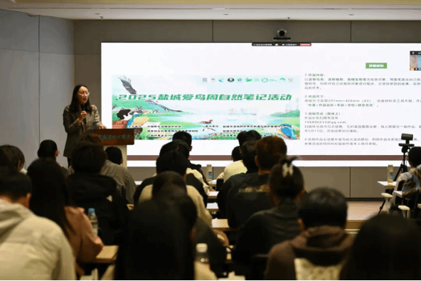 4月20-26日是江苏省“爱鸟周”,4月26日,由中国野生动物保护协会、国家林草局林草调查规划院、红树林基金会(MCF)联合主办,黄海湿地博物馆承办的“湿地飞羽·自然笔记创作营”在黄海湿地博物馆正式启动,数理学院20余名学生作为在盐高校青年大学生代表受邀参加。