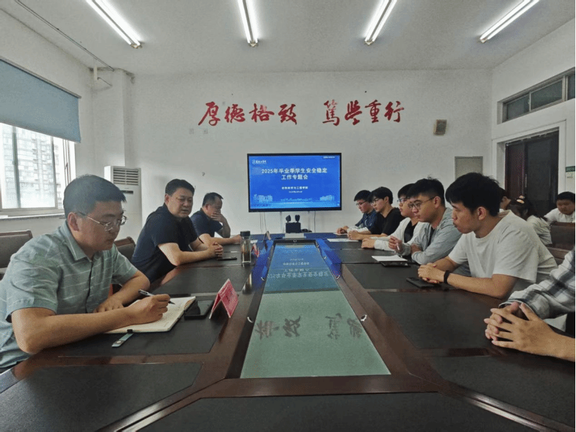 6月4日,学院召开学生安全稳定专题会,学院党委书记唐浩、副书记温崇明、学工办主任王俊出席,研究生主席团成员、本科生学生会骨干、毕业班班长代表等20余人参加。唐浩强调,要提高思想站位,强化责任担当。当前正值毕业季,学生干部要以“时时放心不下”的责任感,扛牢政治责任、筑牢安全底线,切实增强学生的安全意识和提升自我保护能力。要夯实毕业季安全管理机制。学生干部需严格落实值班值守制度,每日联动宿舍长开展“离校前安全巡查”,重点排查实验室、宿舍的水电隐患及毕业生心理动态,建立“学院-班级-宿舍”三级信息报送体系,以“精细化管理”护航毕业季安全稳定。