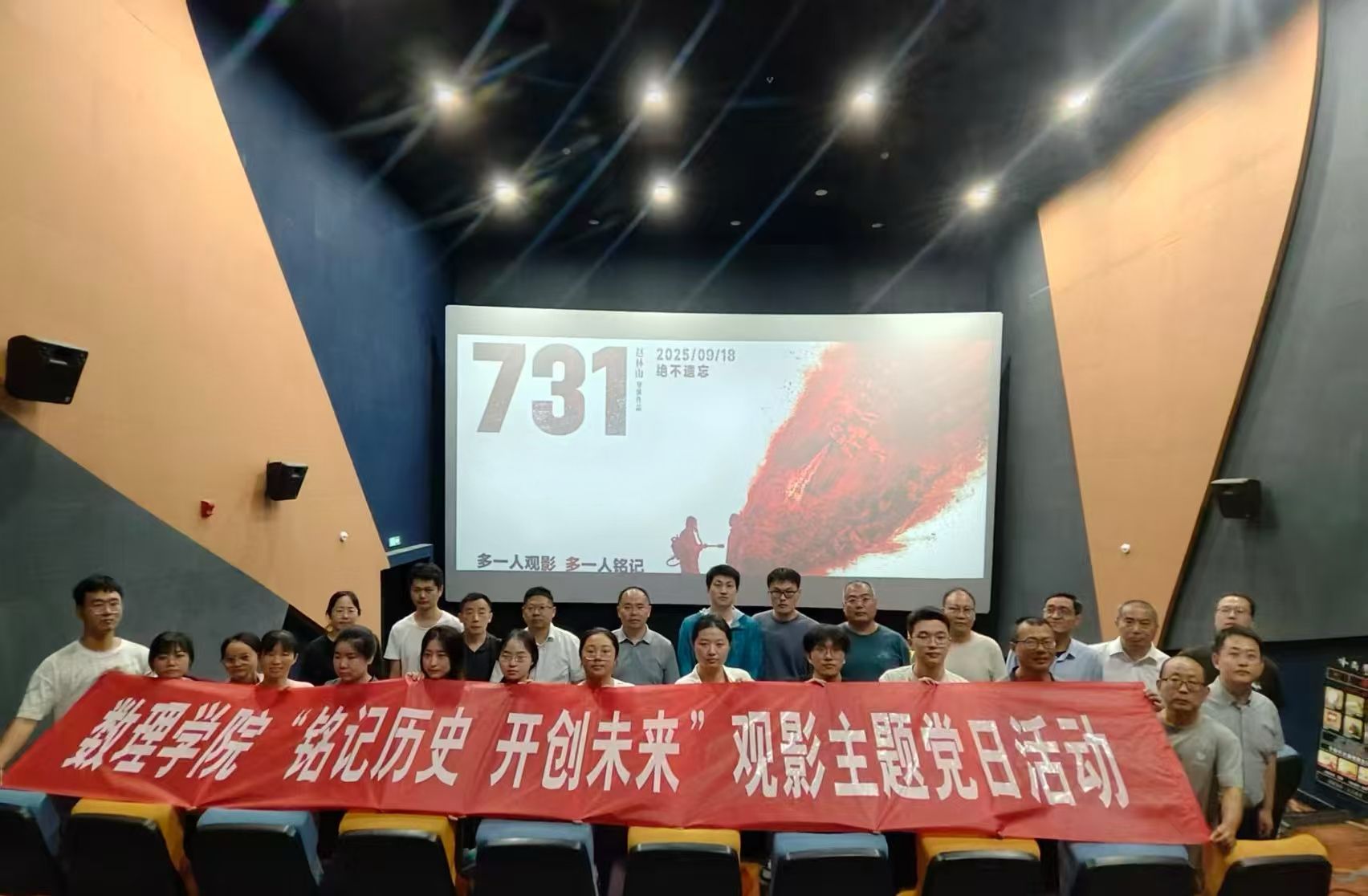 为纪念中国人民抗日战争暨世界反法西斯战争胜利80周年,引导师生铭记历史、珍视和平,9月21日下午,数理学院党总支开展“铭记历史,开创未来”主题党日活动,组织学院师生党员集体观看影片《731》。