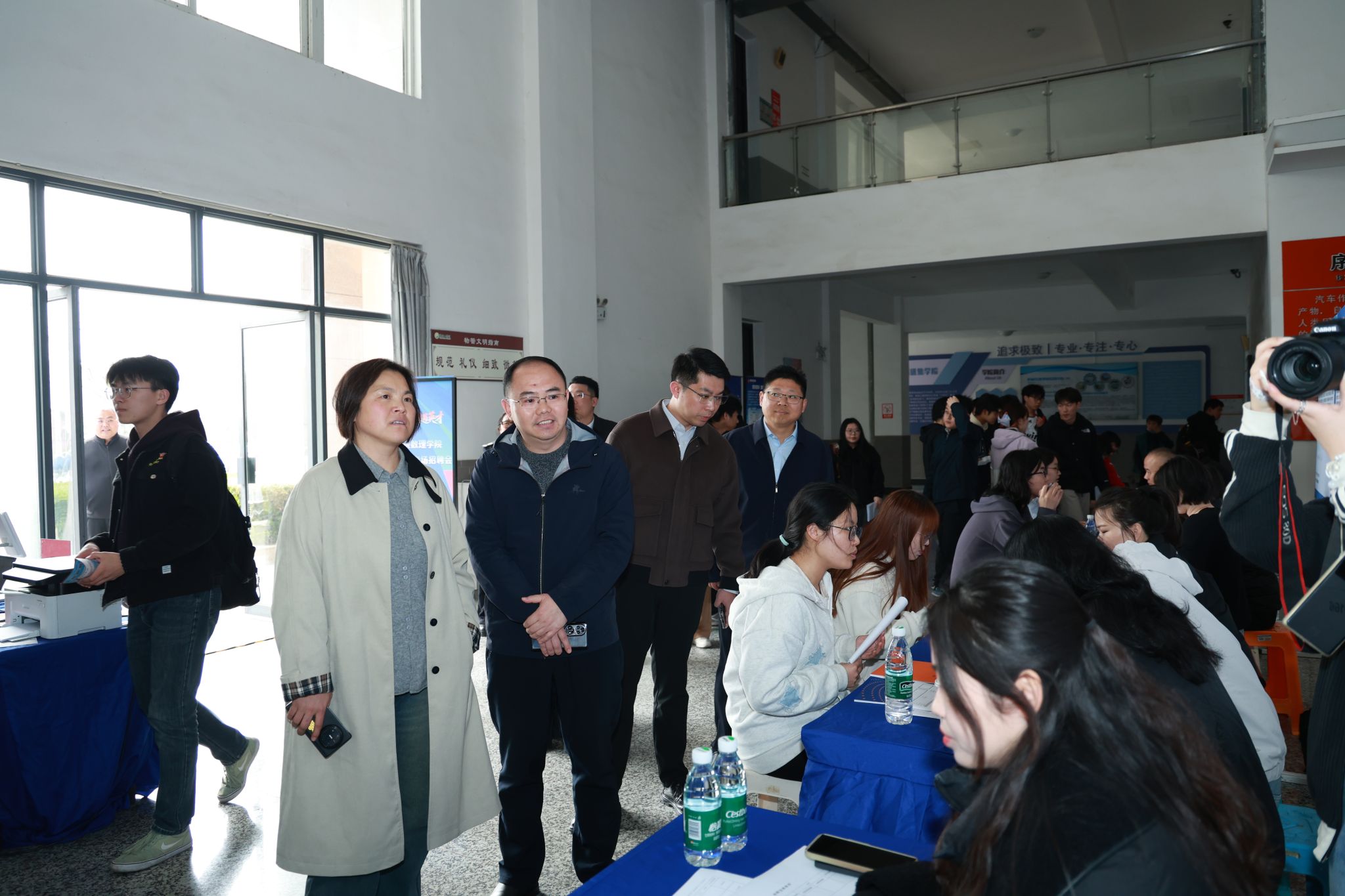 为搭建用人单位与毕业生双向对接平台,帮助2026届毕业生抢抓求职关键期,4月1日下午,学校在南校区机械馆举办“数智赋能,理遇英才”专场招聘会暨就业指导专题讲座。校党委常委、副校长邢晓平到场指导,学工部、学生处、招生与就业创业指导处副处长阳韬,数理学院党总支书记魏伟华、院长徐宁、副书记许众威陪同,毕业班辅导员及2026届毕业生参加活动。