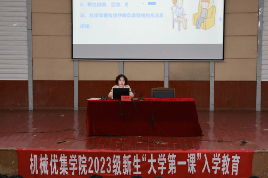 为指导和帮助2023级新生尽快适应新环境、顺利完成角色过渡、科学规划学习生活,10月8日-12日,机械优集学院在建军东路校区五四报告厅和知行楼410教室以线上线下相结合的方式开展2023级新生“开学第一课”系列教育。学院邀请校教务处副处长李爱国开展学籍管理规定专题教育,图书馆副馆长李明开展图书馆入馆教育,学生处副处长韦春华开展新生入学适应专题教育。机械优集学院党委副书记马晓英主持,新生辅导员和656名大一新生参加。