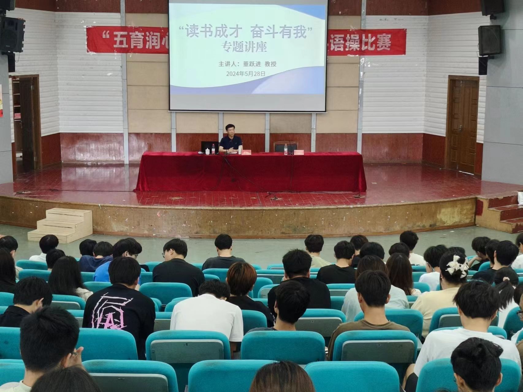 为贯彻落实立德树人根本任务,引导学生坚定理想信念,激励学生树立远大抱负,进一步落实推动关工委优质化建设工作,5月28日下午,在北校区五四报告厅,材料学院邀请“银龄理论宣讲团”专家董跃进教授作“读书成长 奋斗有我”专题讲座。学院党委书记唐浩主持,2023级辅导员及全体学生参加。