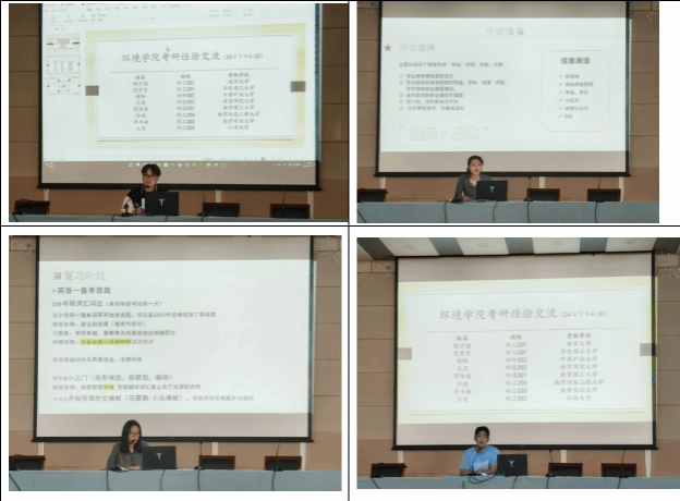随后,8位在考研中取得优异成绩的同学回顾了自己考研的经历,总结了考研学习办法,分享了考研心得。考取南京大学的魏子强同学介绍了自己在备考阶段如何进行规划,并分享了自己在专业课、数学等科目上的学习要点;考取华东理工大学的范青青同学建议大家在考研复习过程当中养成复盘的好习惯,有助于加深对困难知识的理解,一步一个脚印,才能不断前进;考取中国矿业大学的魏畅同学讲述了在复习过程中可能会面临的心理困难,要学会与焦虑等负面情绪共处,及时调整好心态;考取南京师范大学的王芸同学提醒同学们考研不仅是一场对知识和能力的考验,更是一场对毅力和意志的考验,要想考研上岸,最重要的是要坚持,学会将压力化为动力;考取南京理工大学的蒋浩南同学向同学们指出择校是考研成功的一大关键因素,要结合自身优势与劣势科目,选择合理的报考目标,提高报考的成功率;考取南京信息工程大学的冷琪同学向同学们讲述提前了解考研信息的重要性,要提前了解目标院校的专业课及每年录取线和报录比,摸排目标院校的竞争难度,合理制定目标;考取南京农业大学的李韦杰同学分享自己与学业导师交流的经历,建议同学们在专业课或基础课程中要积极向学业老师咨询或请教;考取江南大学的王亮同学提醒同学们在学习过程中需注意劳逸结合,尤其在11、12月份的冲刺阶段适当延长学习时间的同时,还需注意休息,给自己适当的放松和鼓励有助于坚持到最后。