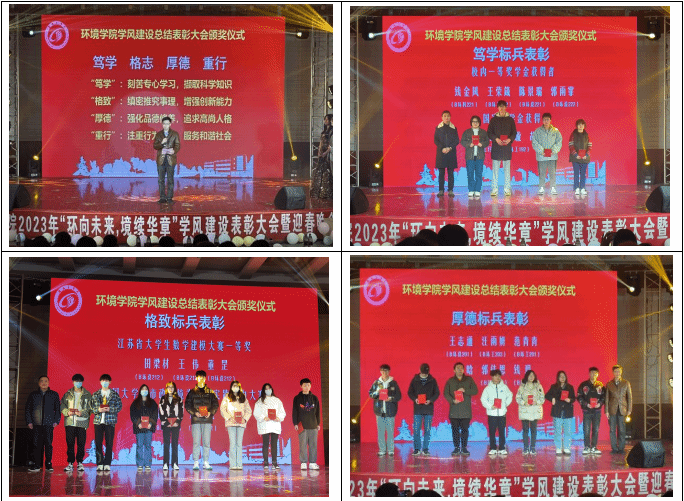 3月26日晚,环境学院在建军东路校区五四报告厅举办“环向未来,境续华章”2023年学风建设表彰大会暨迎春晚会。环境学院党总支书记陈阳、副院长杨百忍、党总支副书记周政出席,师生代表及2022全体新生等400余人参加。