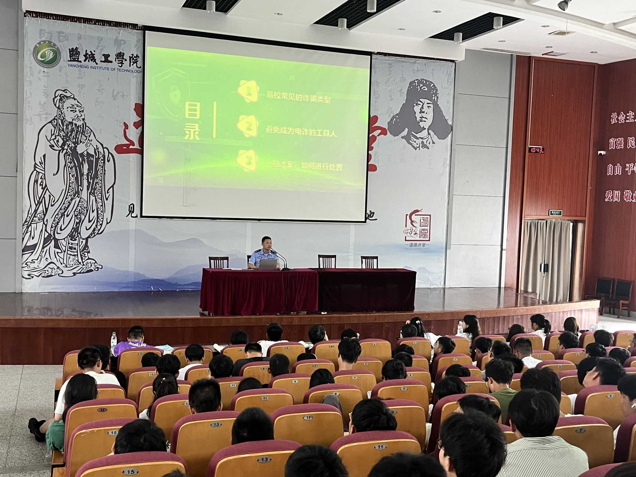 为进一步提升全院师生对电信网络诈骗的防范意识与能力,营造更加安全的校园环境,信息学院于9月12日上午在希望大道校区博学楼报告厅举办“防范电信网络诈骗”专题宣传教育活动。此次活动邀请了亭湖公安局反诈中心朱文军警官主讲,信息学院520余名大一新生参加。