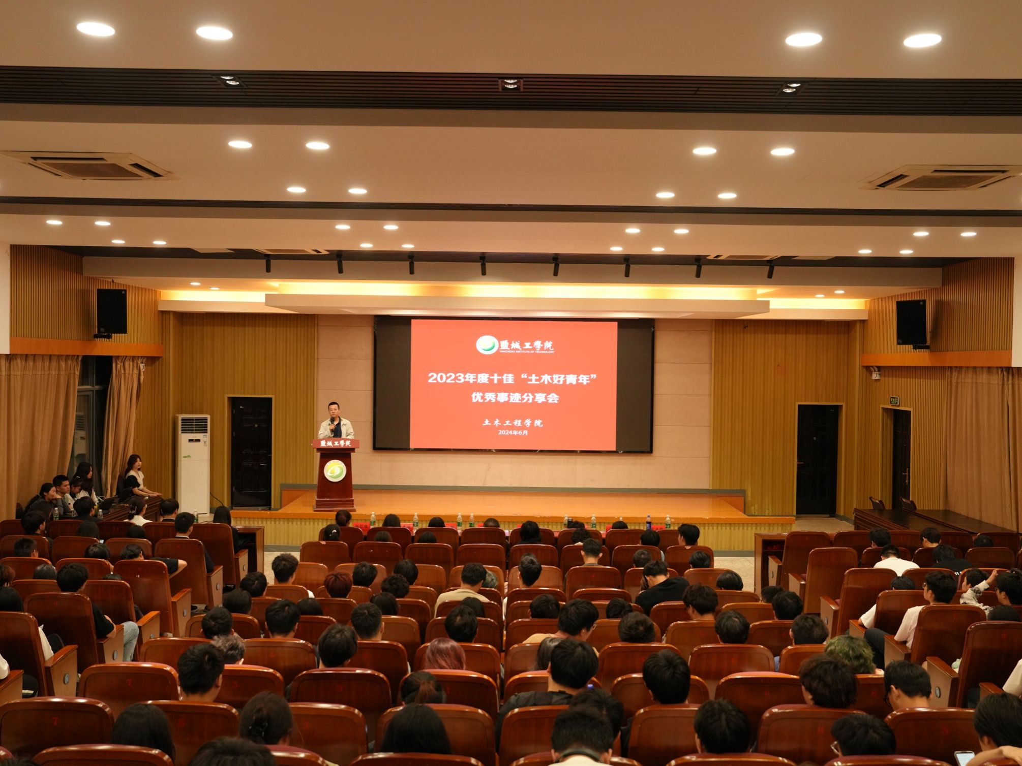 为进一步激发广大学生追求卓越、奋发有为的热情,推动学院学风整体提升,6月3日晚,土木工程学院在希望大道校区机械馆报告厅举办2023年度十佳“土木好青年”优秀事迹分享会。院党委副书记陈广正,学工办负责人、全体专职辅导员和2023级学生代表近300人参加了此次活动。