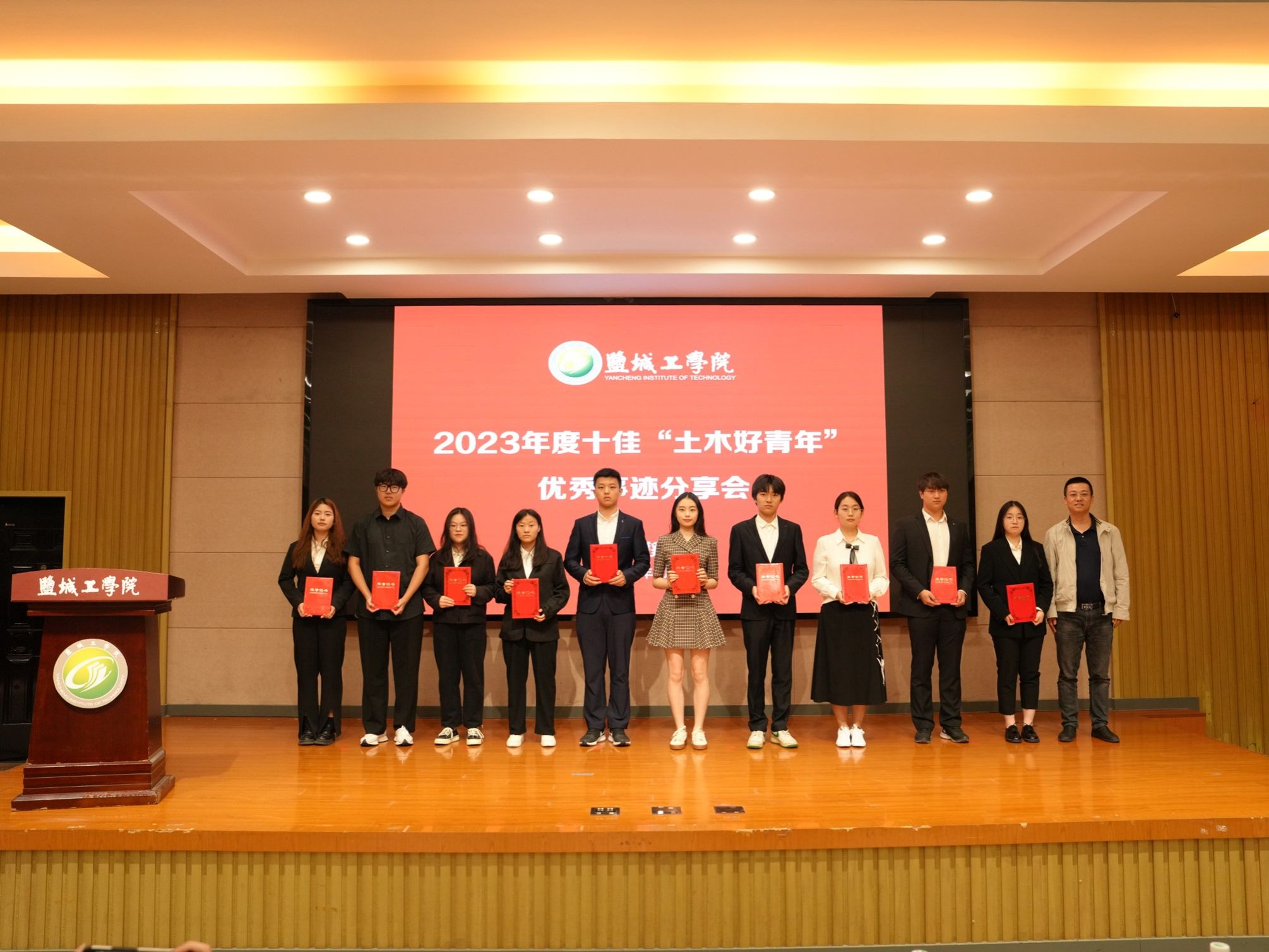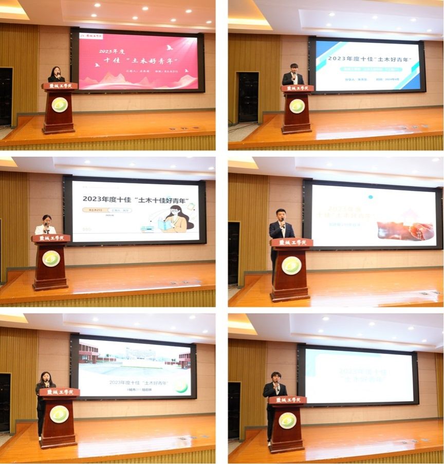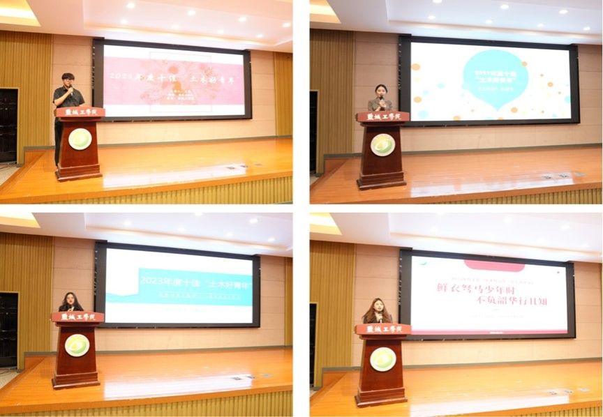 在事迹分享环节中,十位优秀学子用生动的事例和真挚的情感讲述了自己的成长故事和奋斗历程。他们的事迹不仅展现了土木工程学院学子的专业素养和实践能力,更彰显了他们敢于担当、勇于创新的精神风貌。左承铮同学乐于奉献勇于担当,朱天乐同学勤奋好学追求卓越,朱凌云同学张弛有度有条不紊,韦铮同学坚持不懈突破自我,施慧同学在家乡热土上挥洒汗水,黄昌洋同学专业扎实能力出色,陆启琪同学以平和心态应对人生起伏,秦瑀晗同学心怀梦想勇往直前、王凯同学脚踏实地稳步前行、吴聪月同学青春热血激扬奋斗。