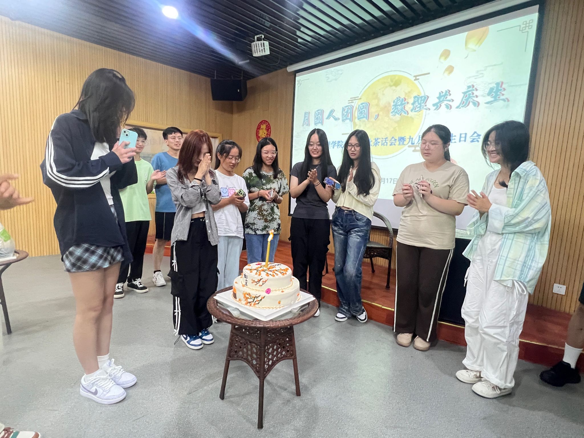 数理共庆生。活动的高潮部分,便是学院特地为阳历九月过生日的新生们准备了充满美好寓意的生日蛋糕。新生们在热烈的掌声中走上台,在大家的祝福声中许下心愿,共同吹灭蜡烛,共享这份甜蜜。这一刻,生日的喜悦和中秋的团圆氛围完美融合,让在场的每一个人都感受到了满满的幸福。