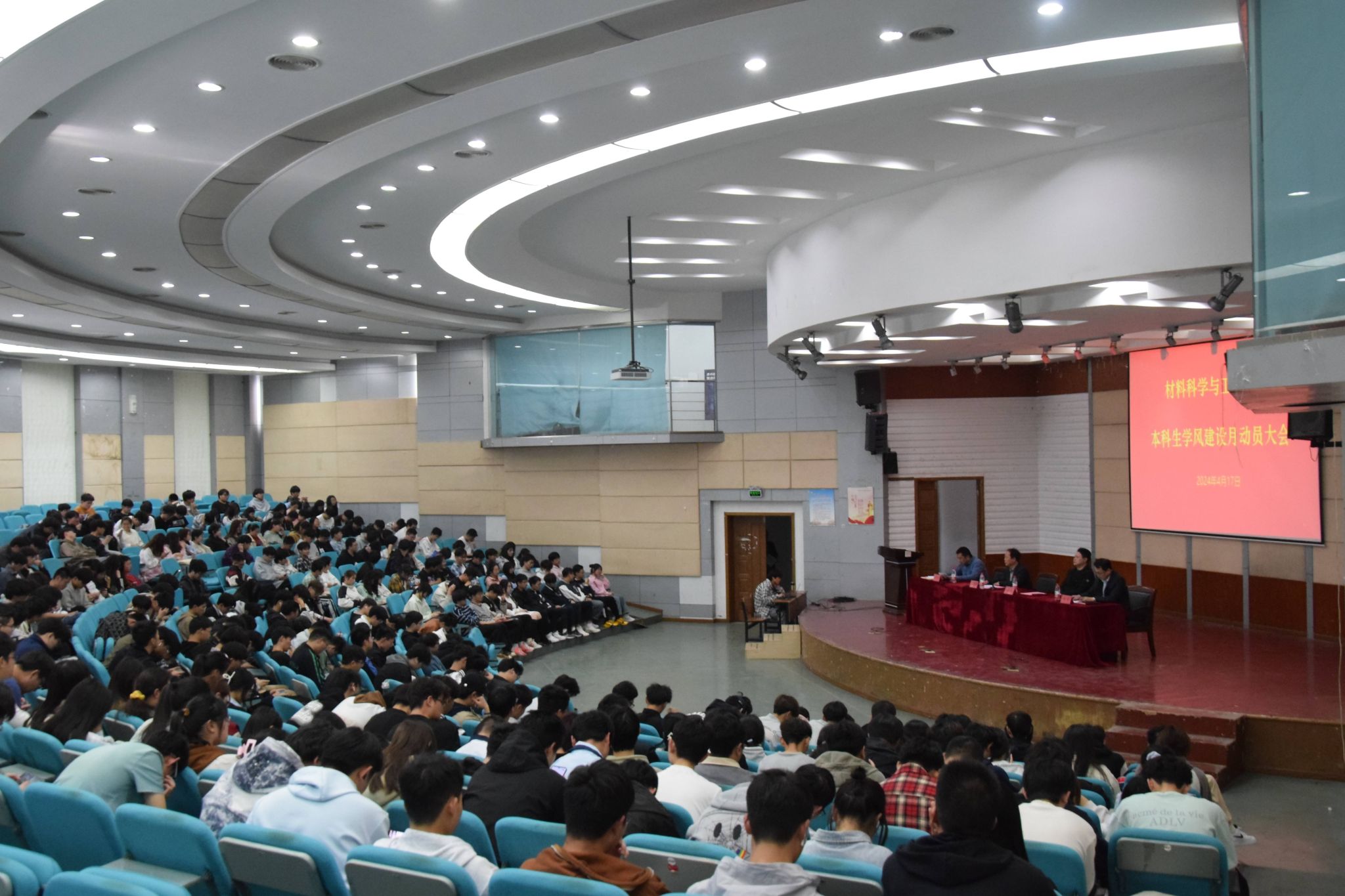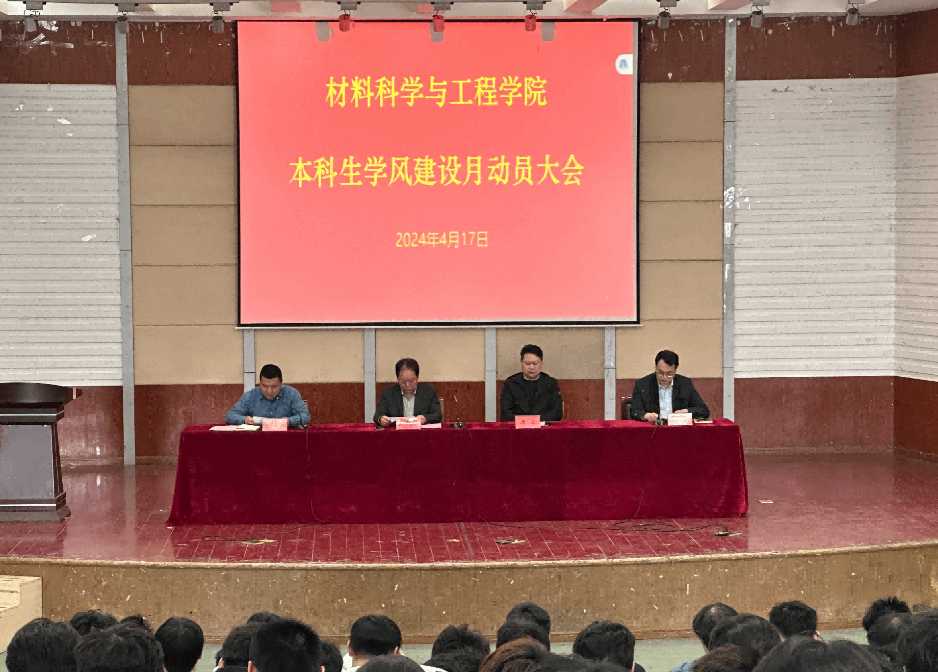 为弘扬和培育优良学风,调动学生学习主动性和积极性,4月17日下午,材料学院在北校区五四报告厅召开2024年学风建设月动员大会,材料学院党委书记唐浩、院长罗驹华、副院长诸华军、专职辅导员及全体大一学生参加。学院党委副书记朱凌主持会议。