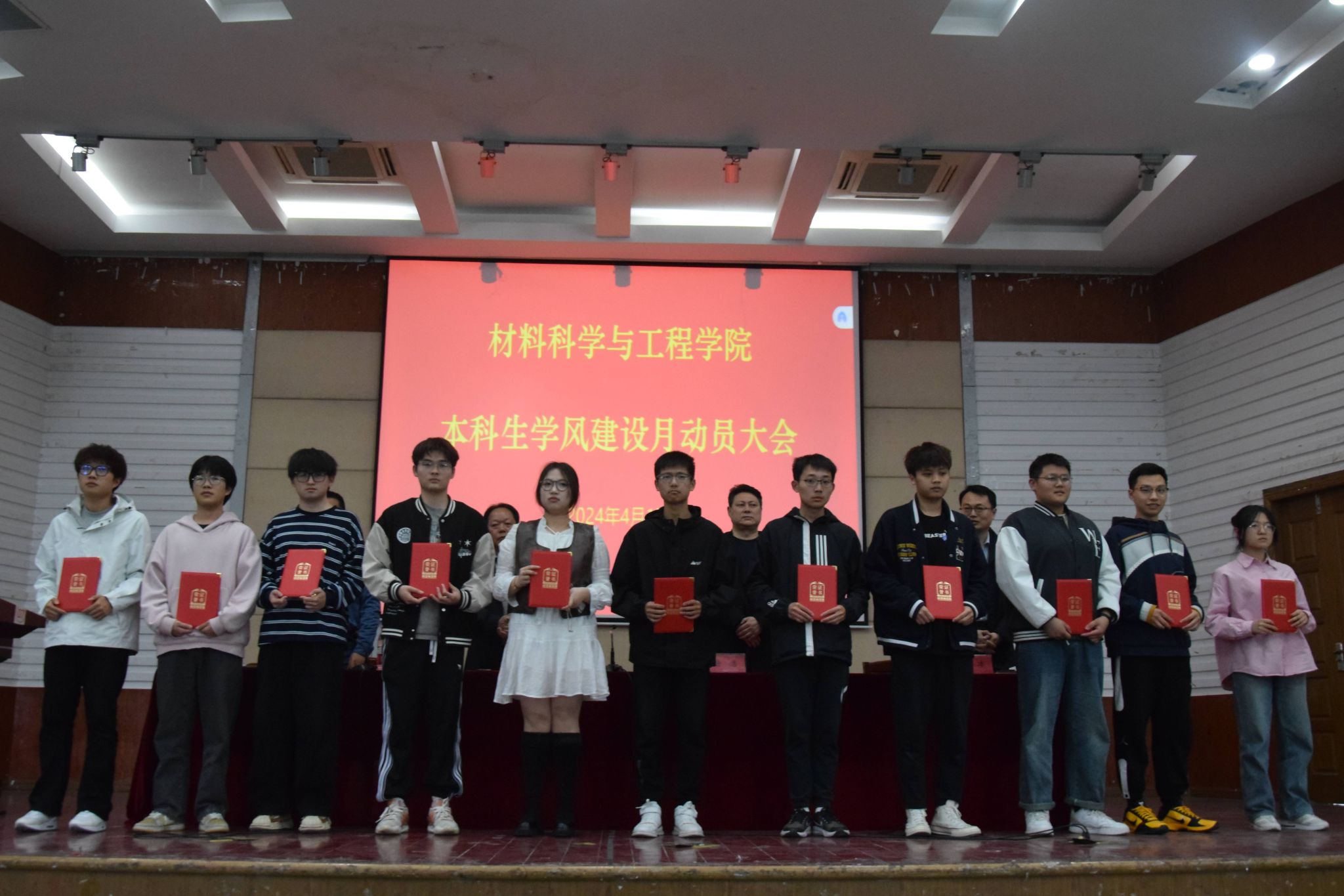会上,诸华军宣读了“本科生学风建设月活动方案”、“关于选评材料科学与工程学院本科生十佳学习标兵和先进班级的通知”和“关于表彰大学英语四级考试标兵的决定”。学院领导为获奖同学颁发荣誉证书。