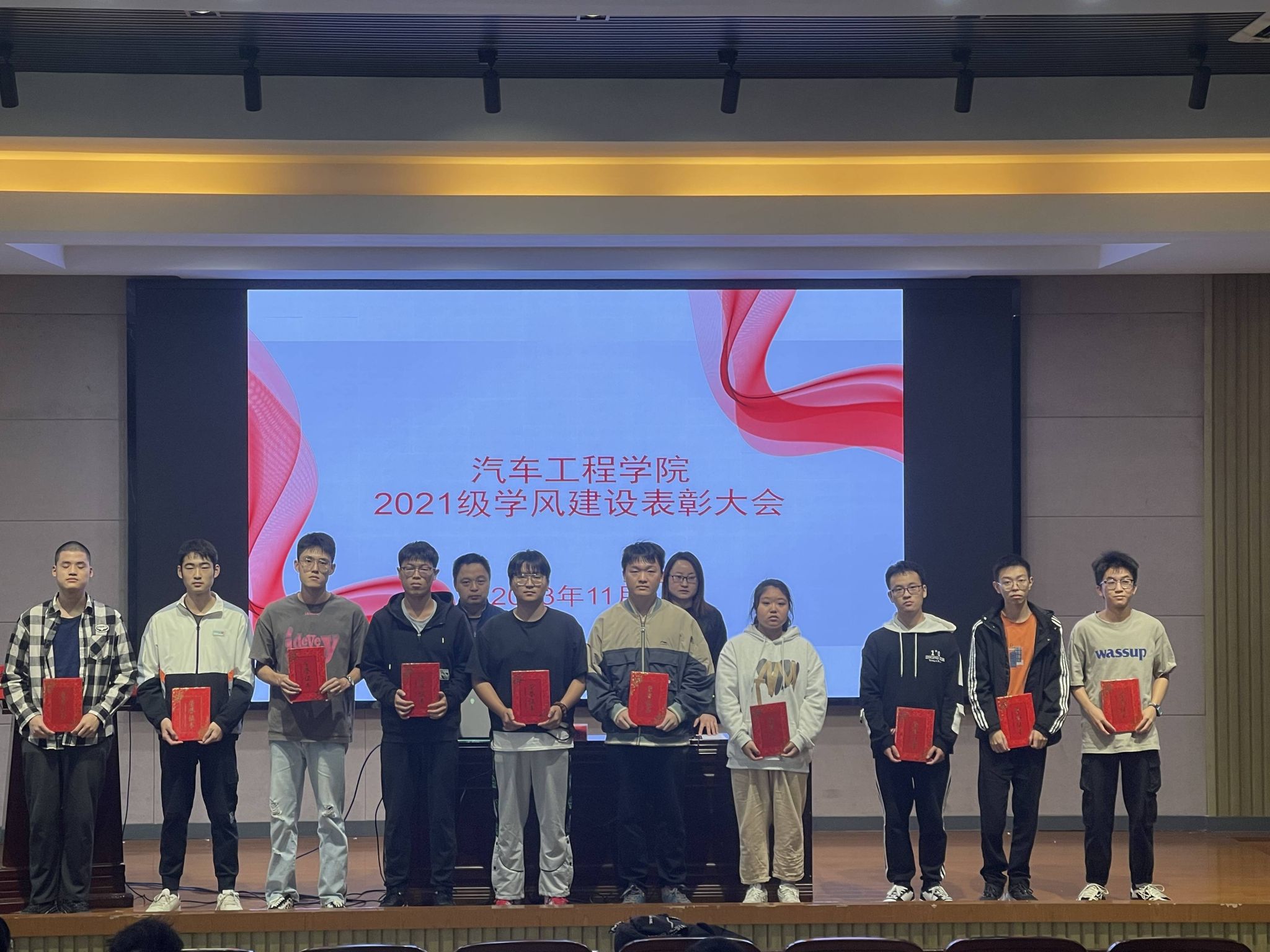 为进一步加强学风建设,营造良好学习氛围,强化朋辈帮扶,发挥榜样力量,11月1日上午,汽车工程学院在南校区机械馆报告厅召开2021级学风建设大会暨学业表彰大会。学院党总支副书记姜华、辅导员姚源及学院2021级全体学生参加。会议由学院学工办主任吴慰春主持。