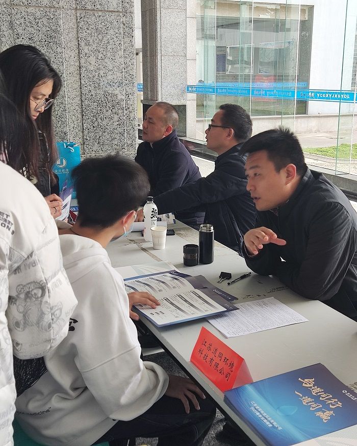 苏州市宏宇环境科技股份有限公司负责人表示,环境学院毕业生专业素质高、实践能力强,希望继续能长期与学院保持合作关系,吸纳应届毕业生进企业实习。江苏道同环境科技有限公司负责人表示,这是他们第一次来盐工线下招聘,感受到了学校对招聘单位的热情,此次招聘也收到不同专业30余份简历,现场初步达成就业意向3人。