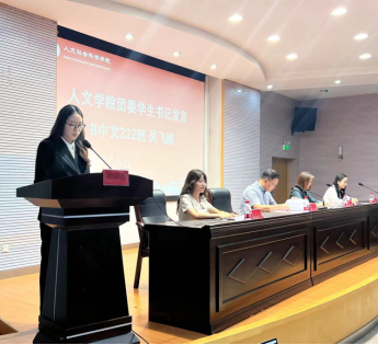 姚爱华宣读了《人文社会科学学院第二十二届学生会、团委学生干部聘任名单》。在之后的第二十二届团学干部聘任仪式上,与会领导为团学干部颁发聘书。新任学生会主席张惠芝、团委学生书记吴飞越分别作表态发言。乐珮珮以《强素质、提能力、促成长》为题,围绕校园文化活动的策划、组织和落实为学生干部进行业务培训。