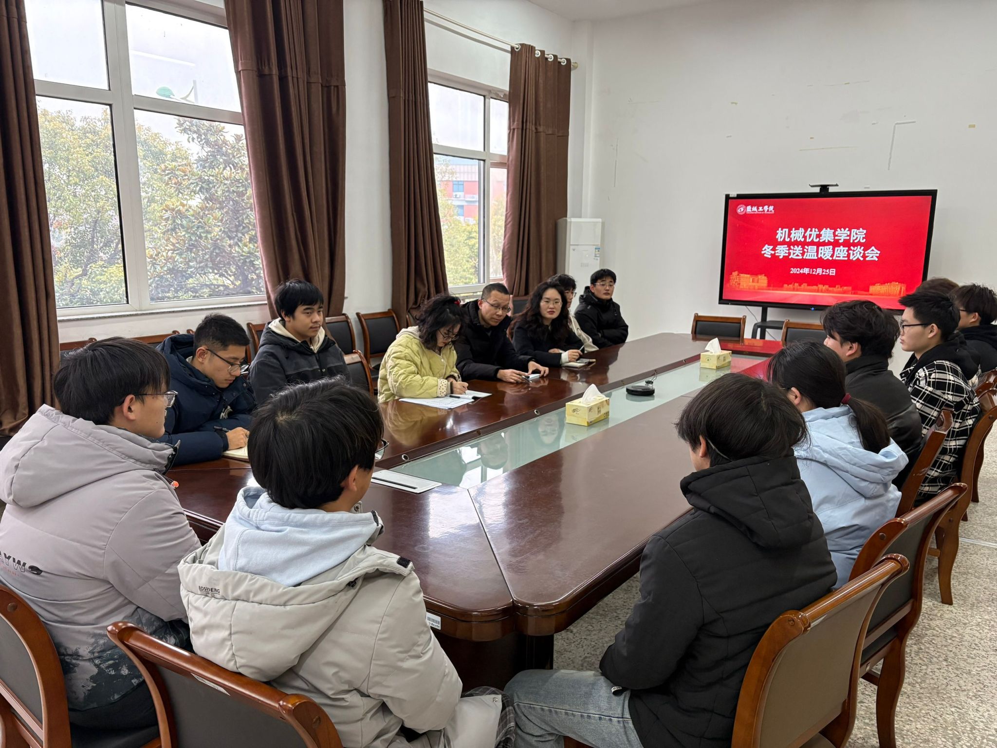 12月25日下午,在南校区机械馆A223会议室,机械优集学院举办“冬季送温暖”师生座谈会,机械优集学院党委副书记闫小民、辅导员苏雅及“冬季送温暖”获助学生参加,学工办主任程云庆主持。